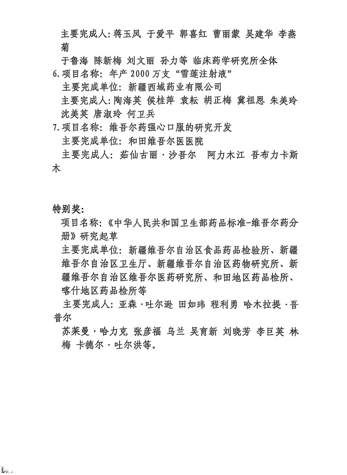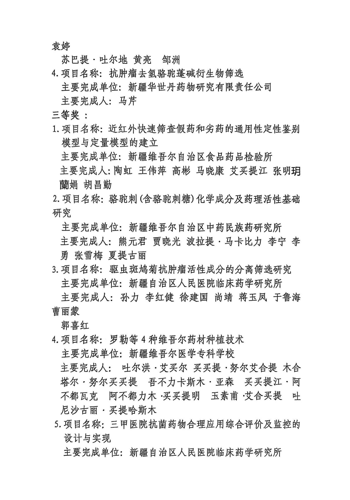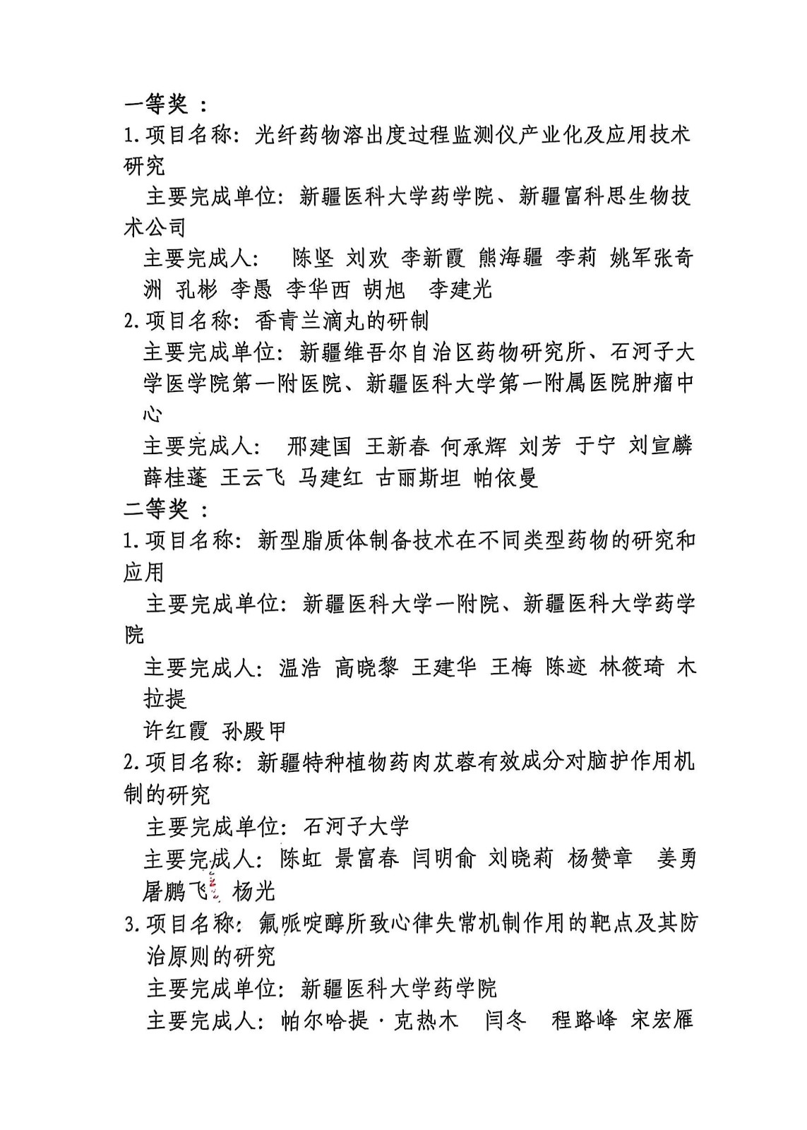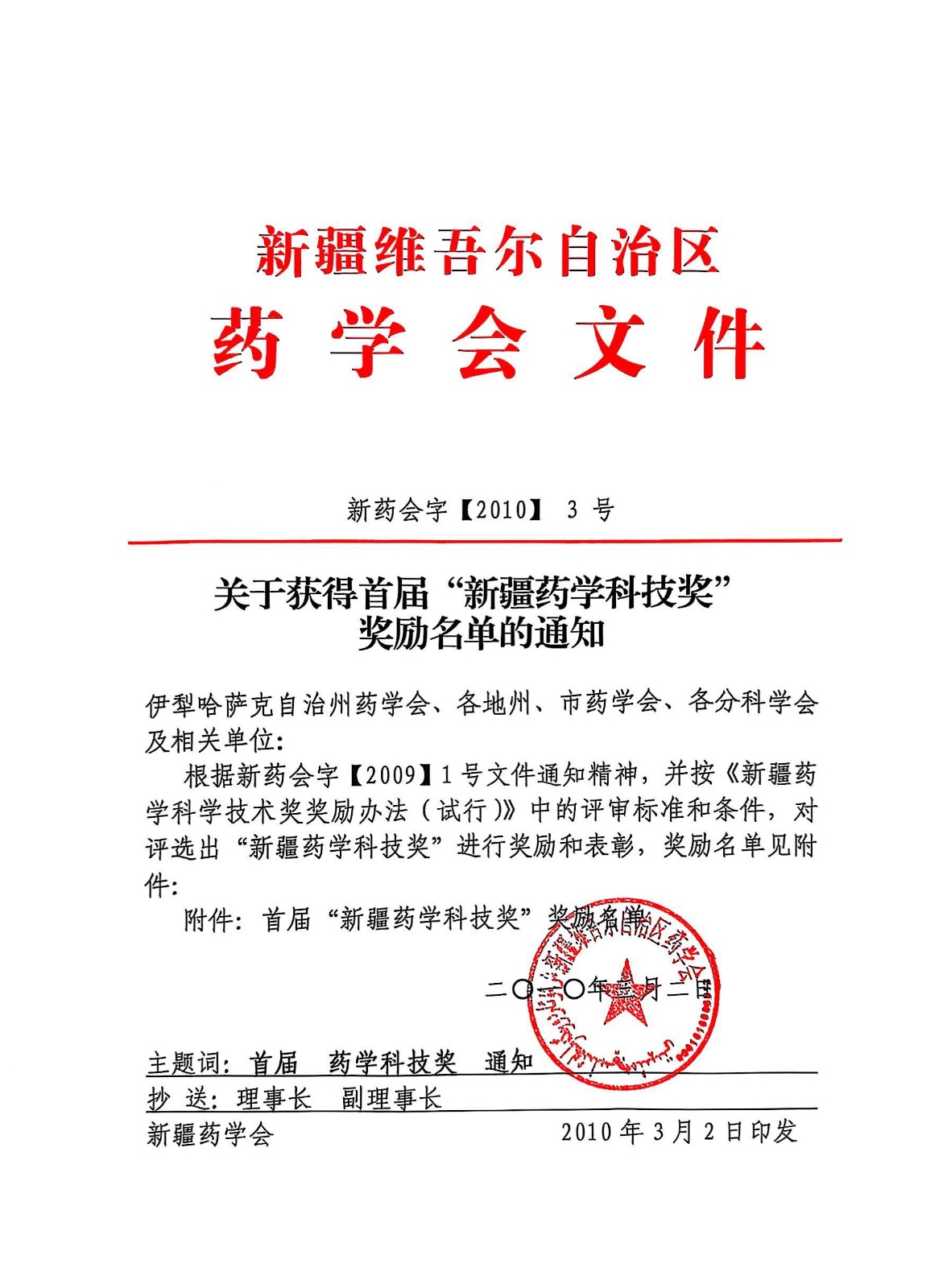 关于获得首届“新疆药学科技奖”奖励名单的通知