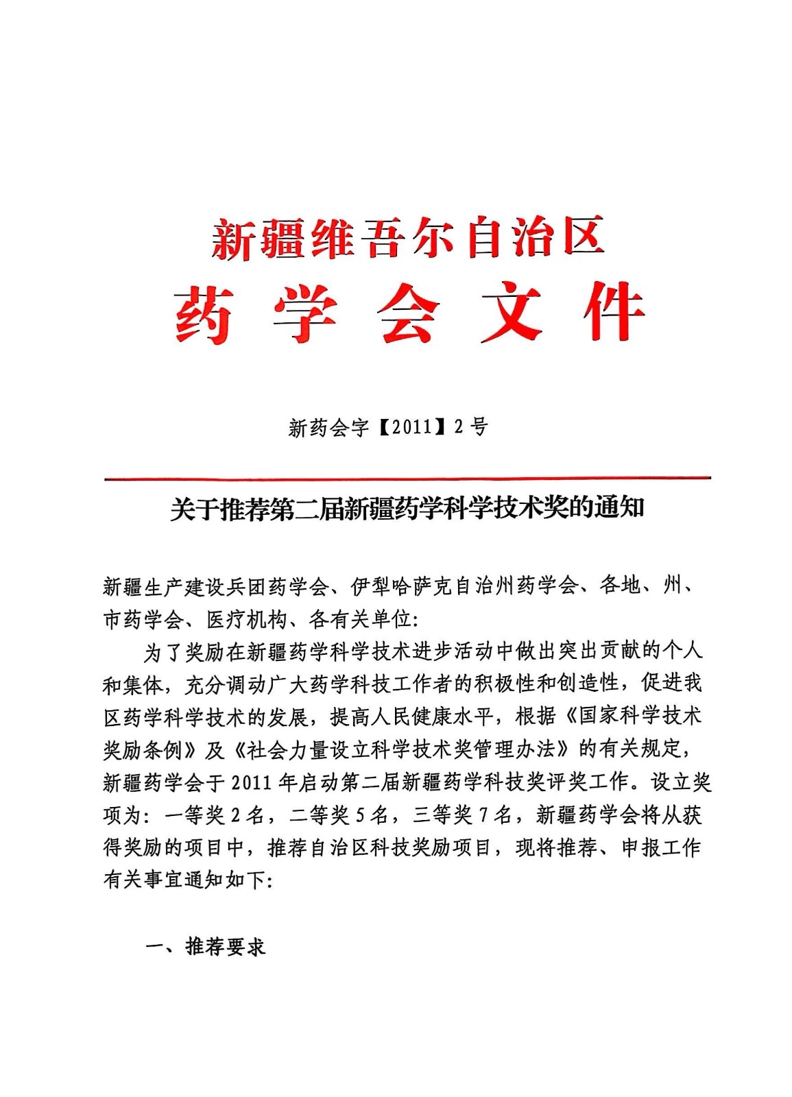 2.新疆药学会科技奖项目推荐书(附件2).doc