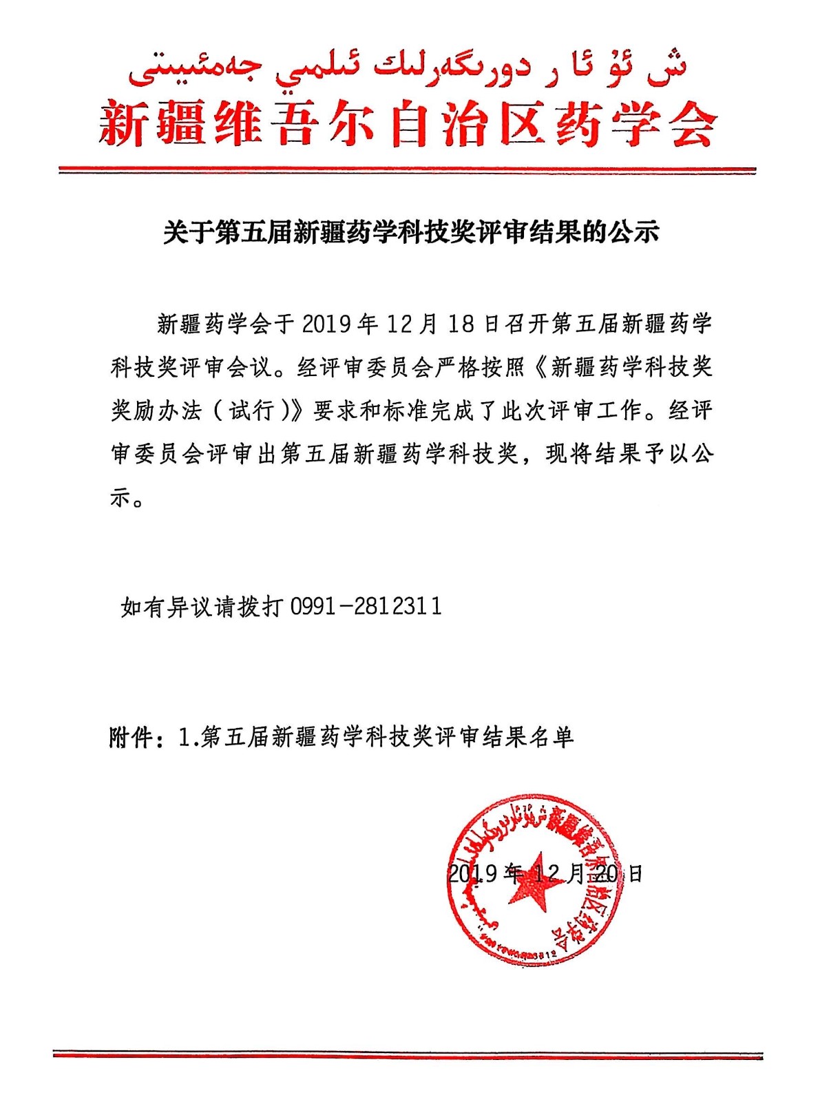 关于第五届新疆药学科技奖评审结果的公示