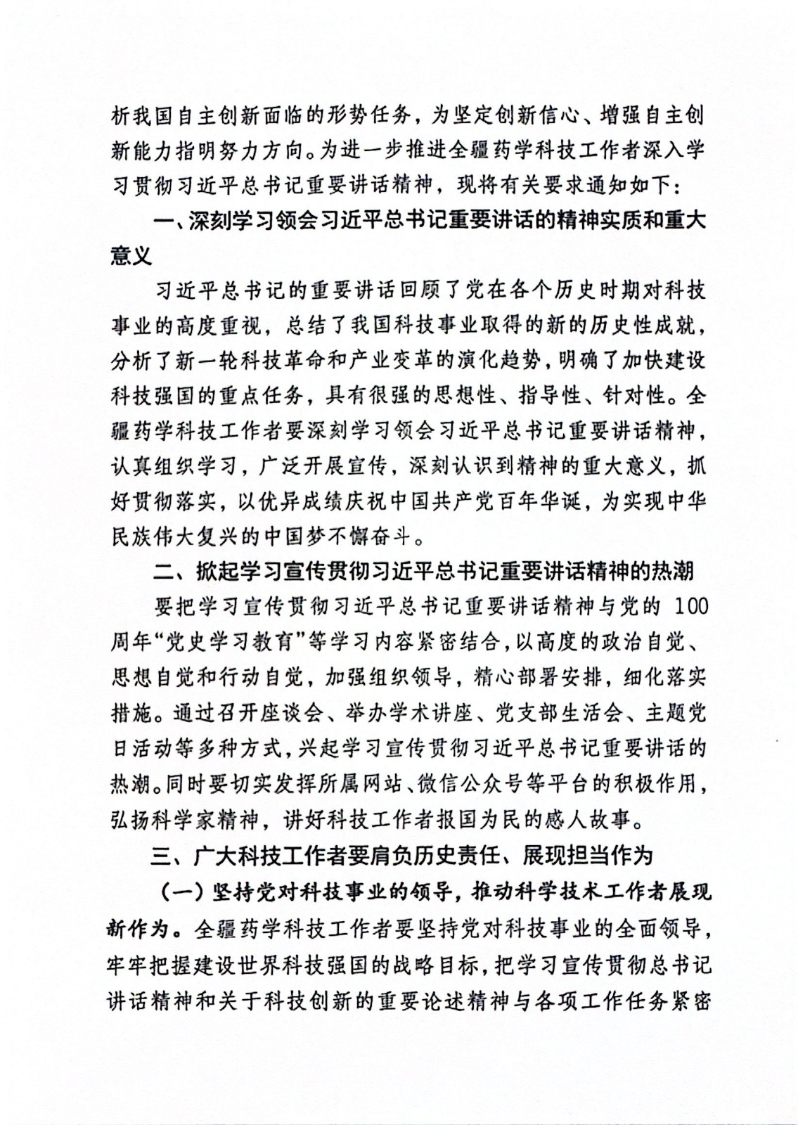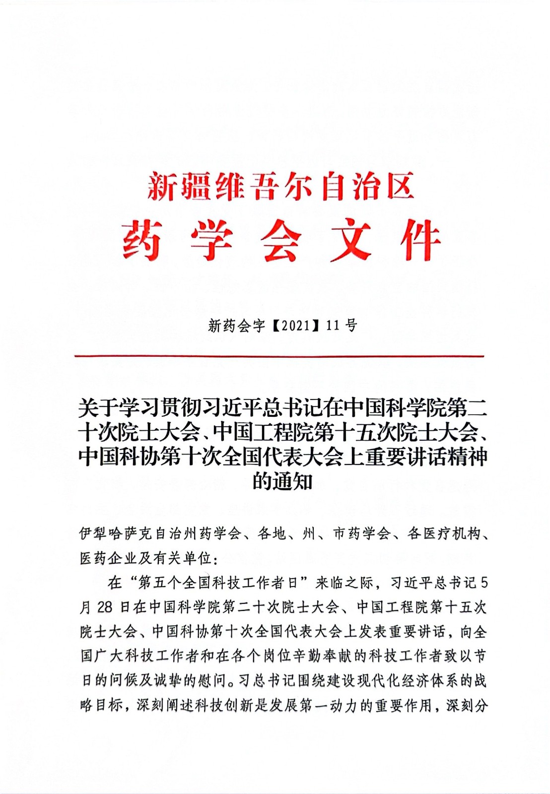 关于学习贯彻习近平总书记在中国科学院第二十次院士大会、中国工程院第十五次院士大会、中国科协第十次全国代表大会上重要讲话精神的通知