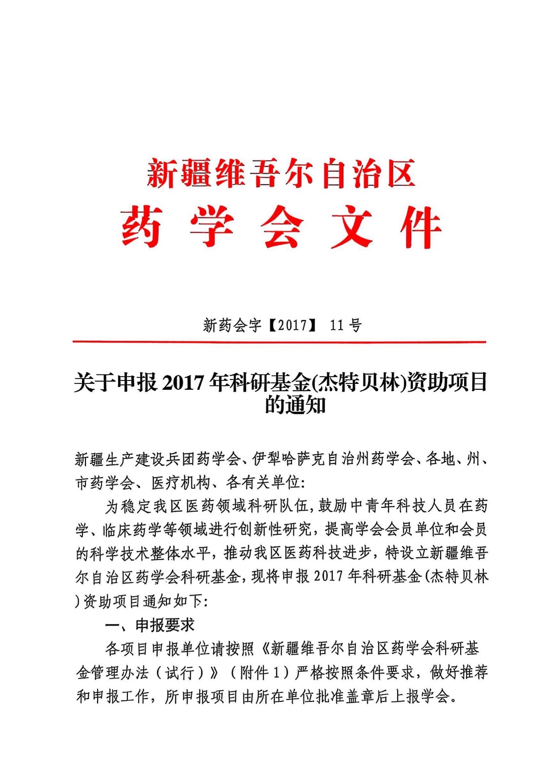 关于申报2017年科研基金(杰特贝林)资助项目的通知