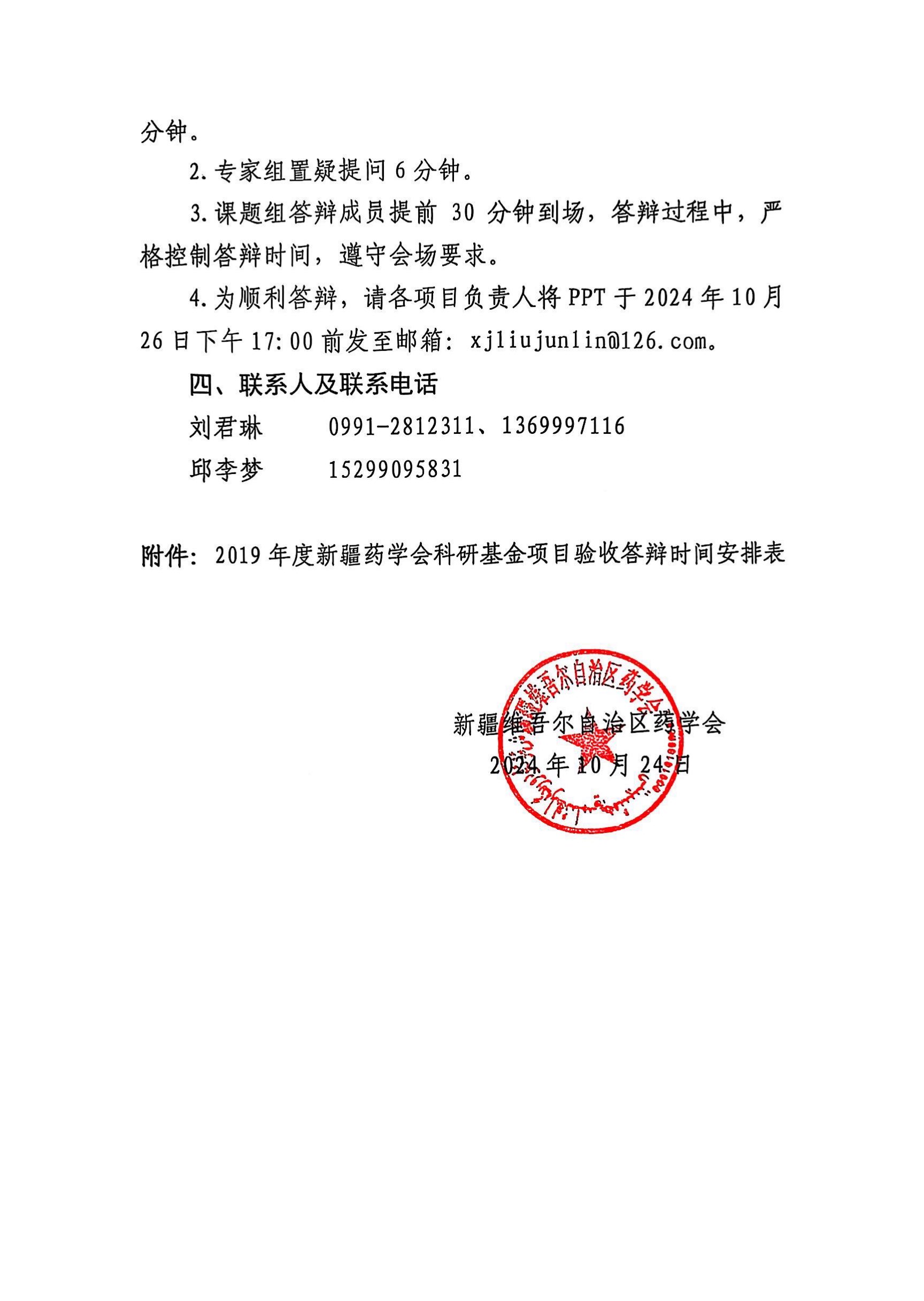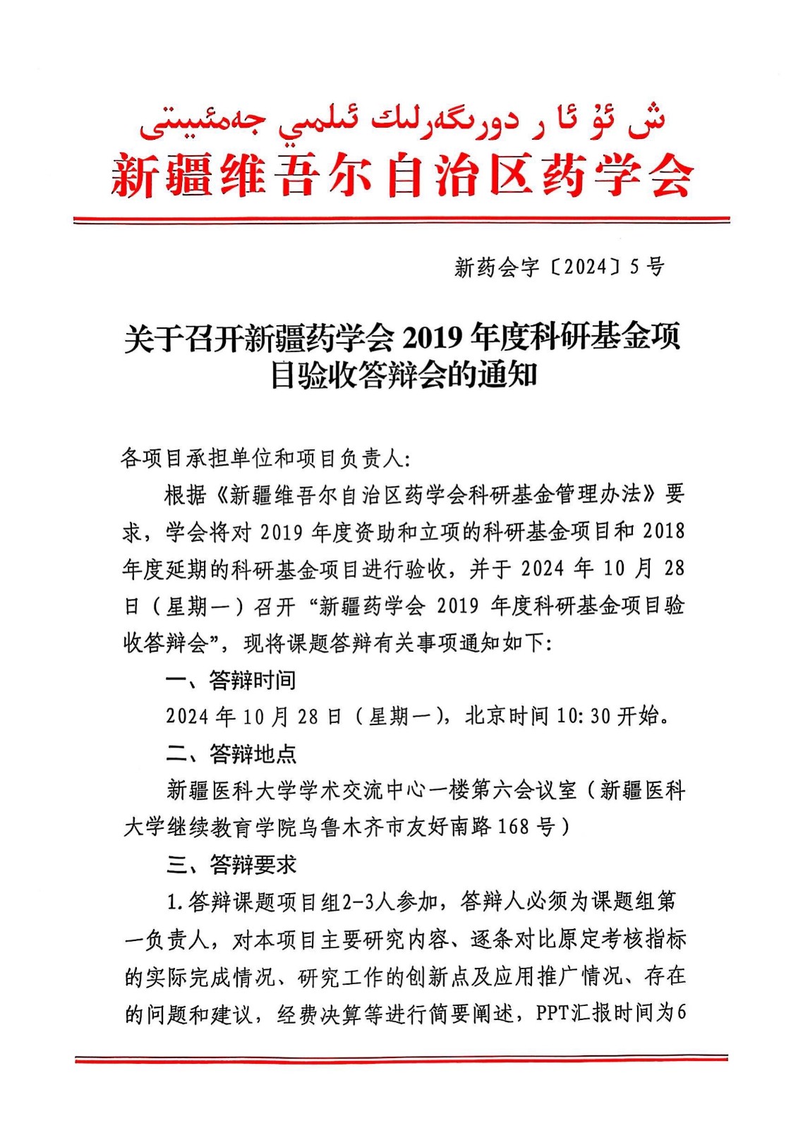 关于召开新疆药学会2019年度科研基金项目验收答辩会的通知