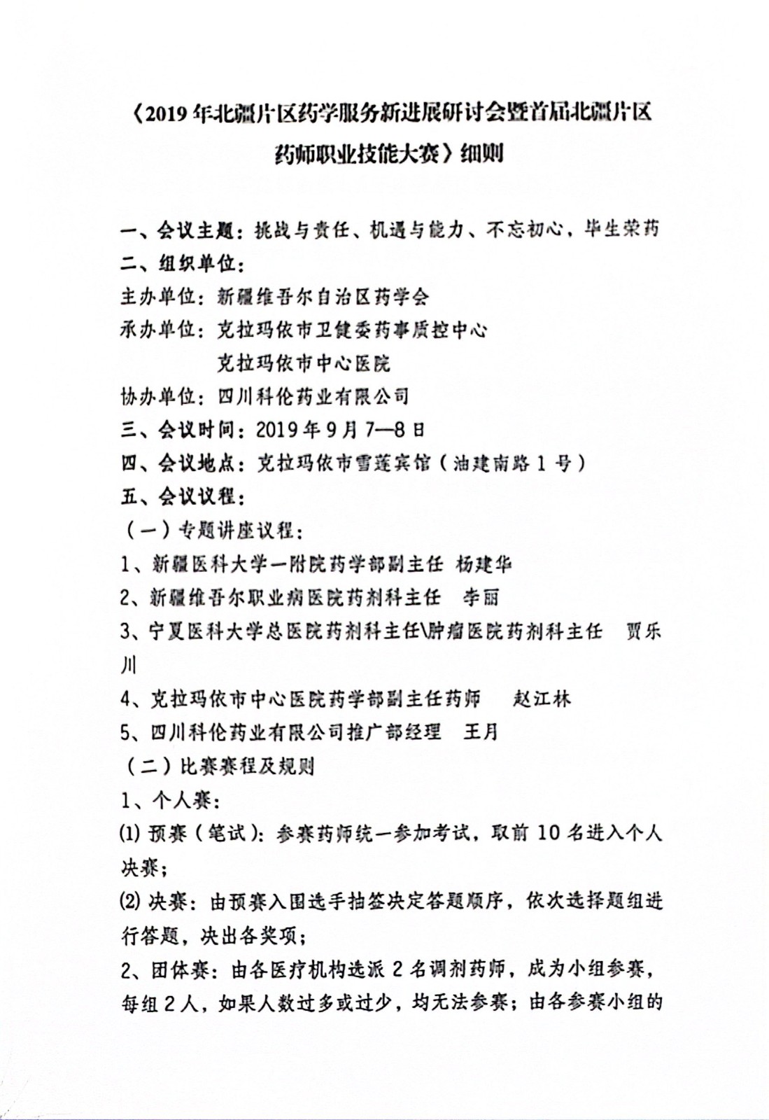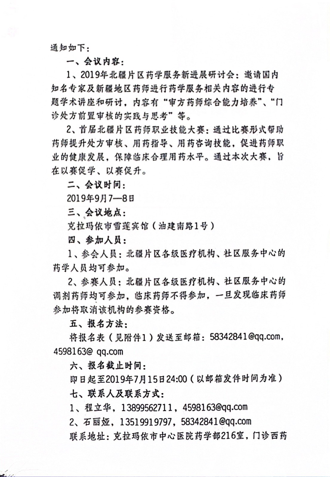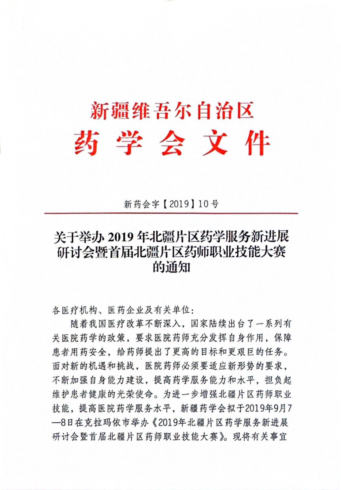 关于举办2019年北疆片区药学服务新进展研讨会暨首届北疆片区药师职业技能大赛的通知