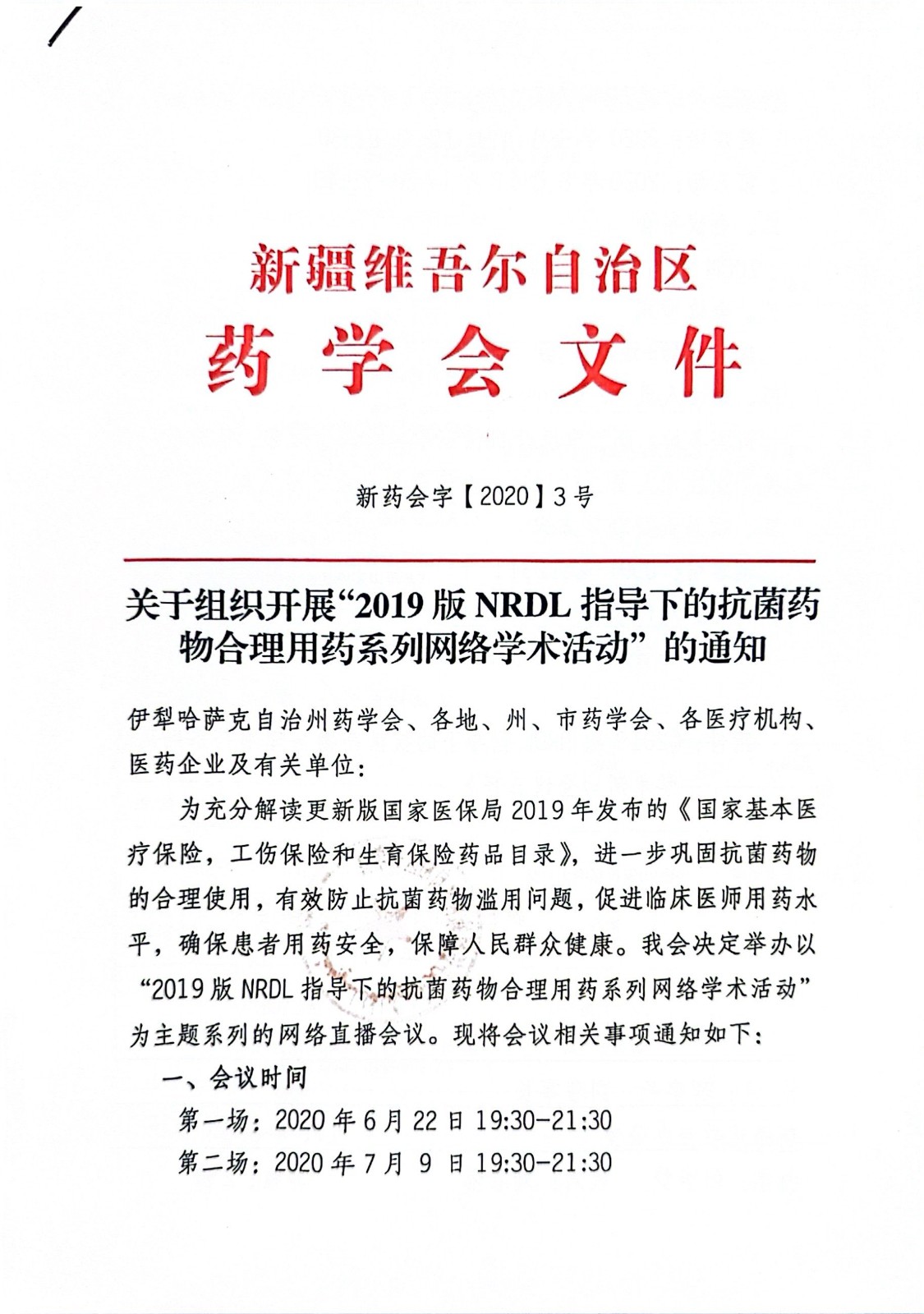 关于组织开展“2019版NRDL指导下的抗菌药物合理用药系列网络学术活动”的通知