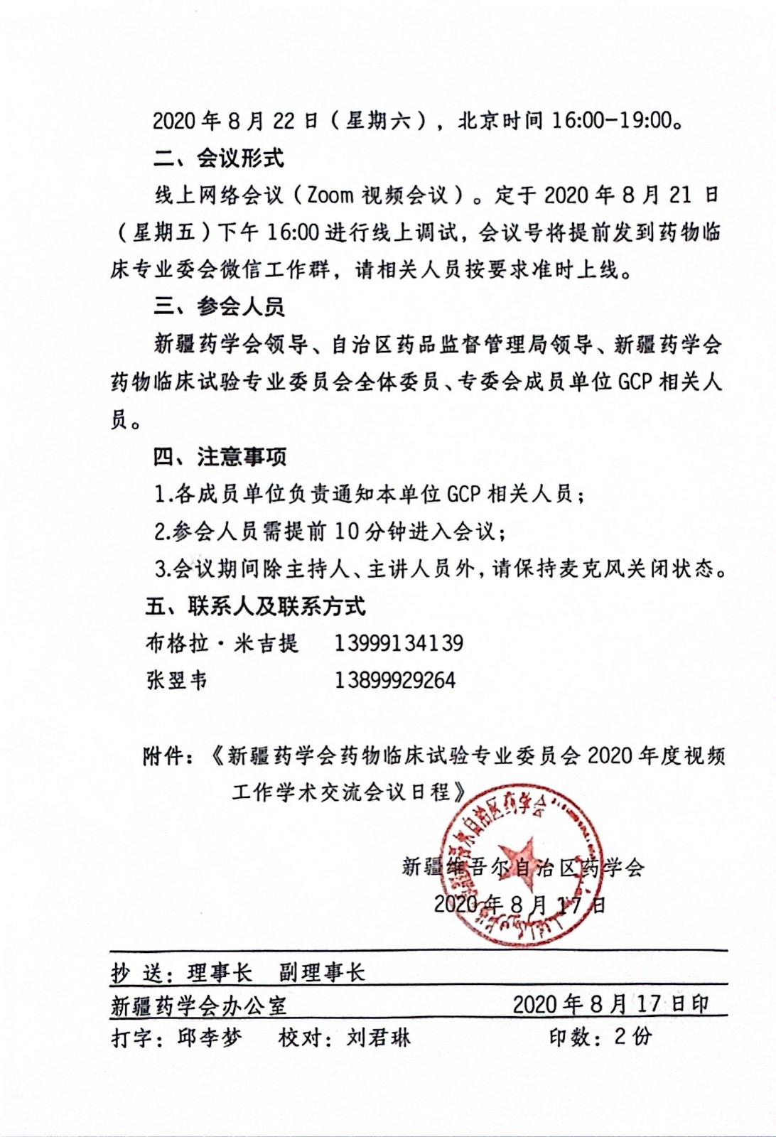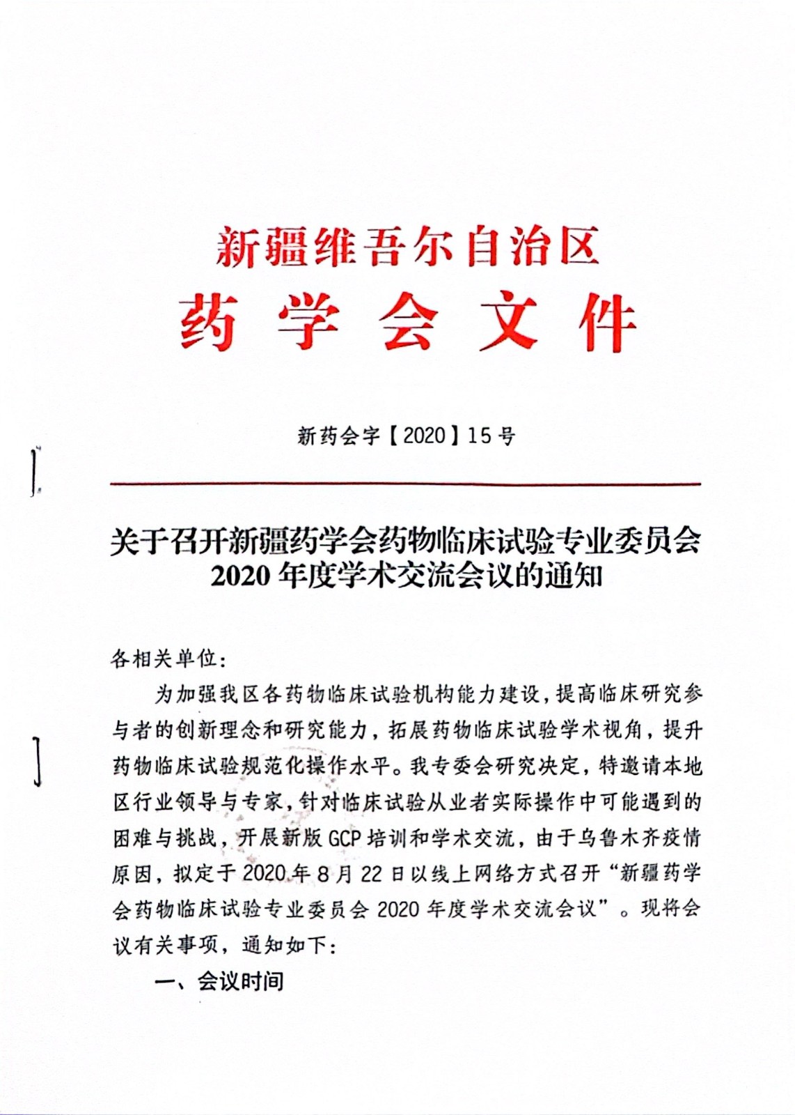 关于召开新疆药学会药物临床试验专业委员会2020年度学术交流会议的通知