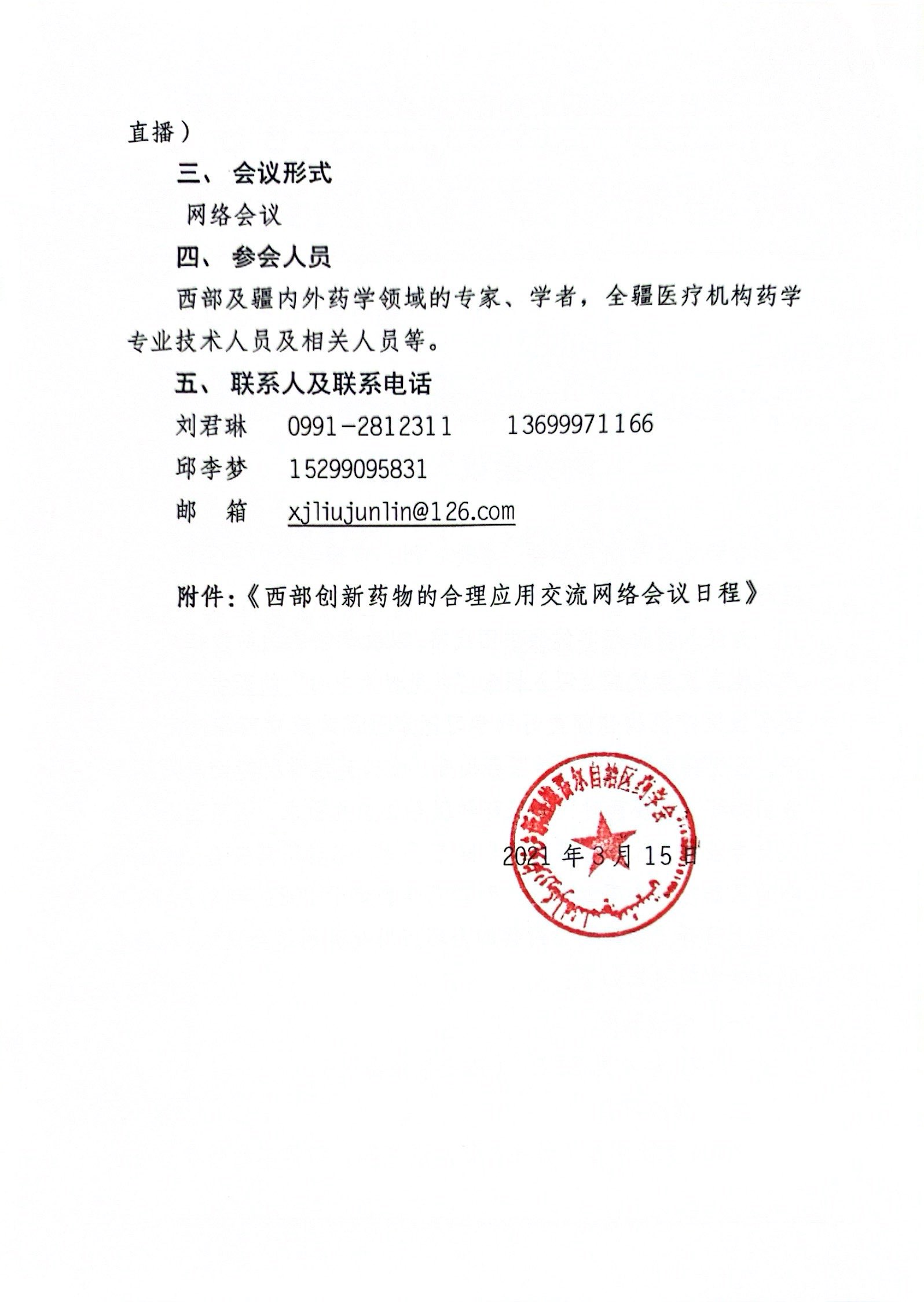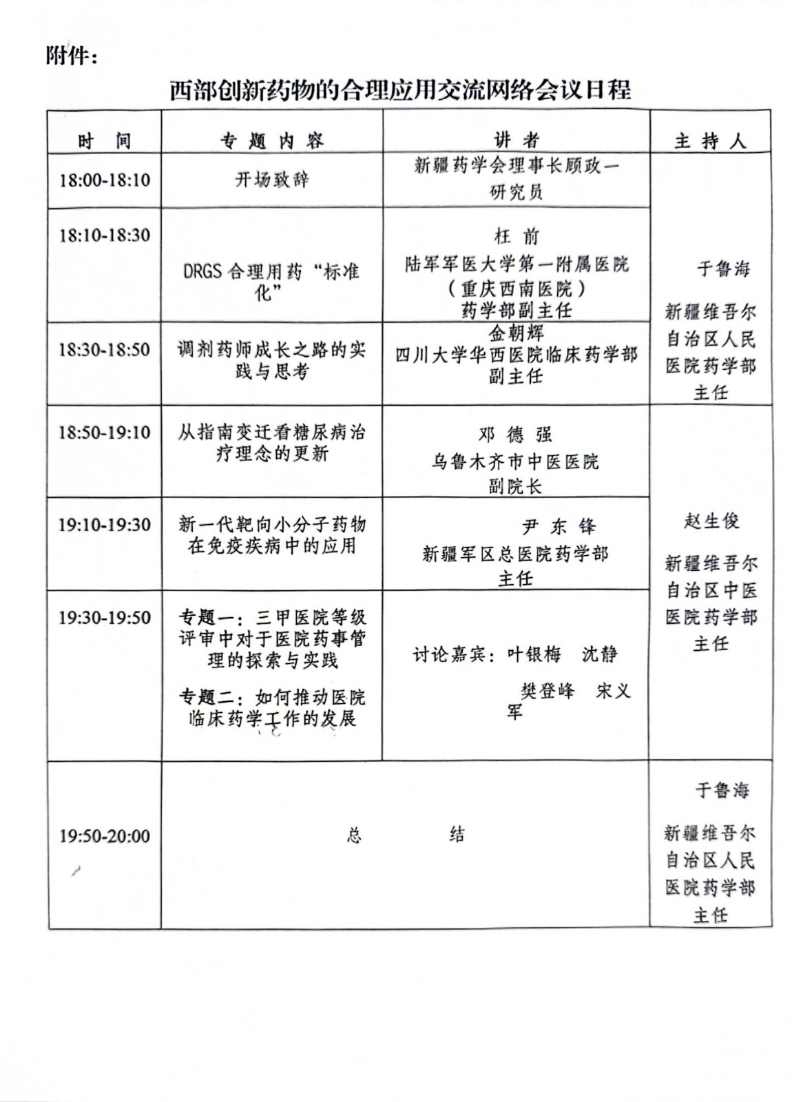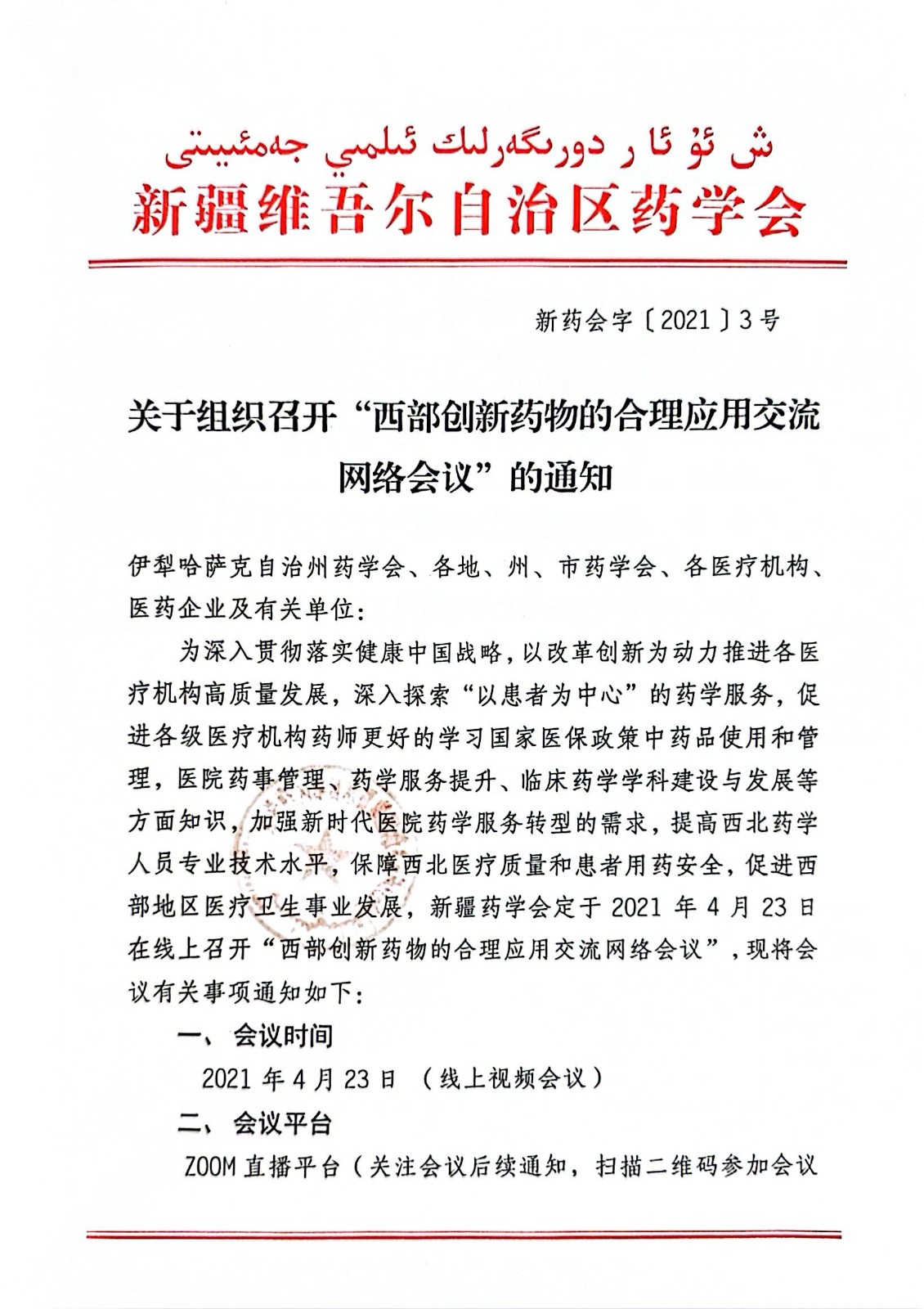 关于组织召开“西部创新药物的合理应用交流网络会议”的通知
