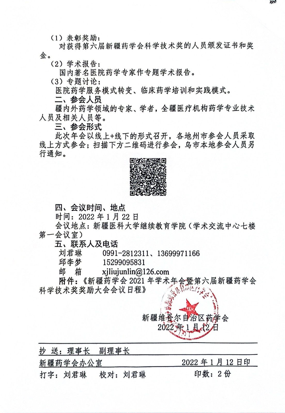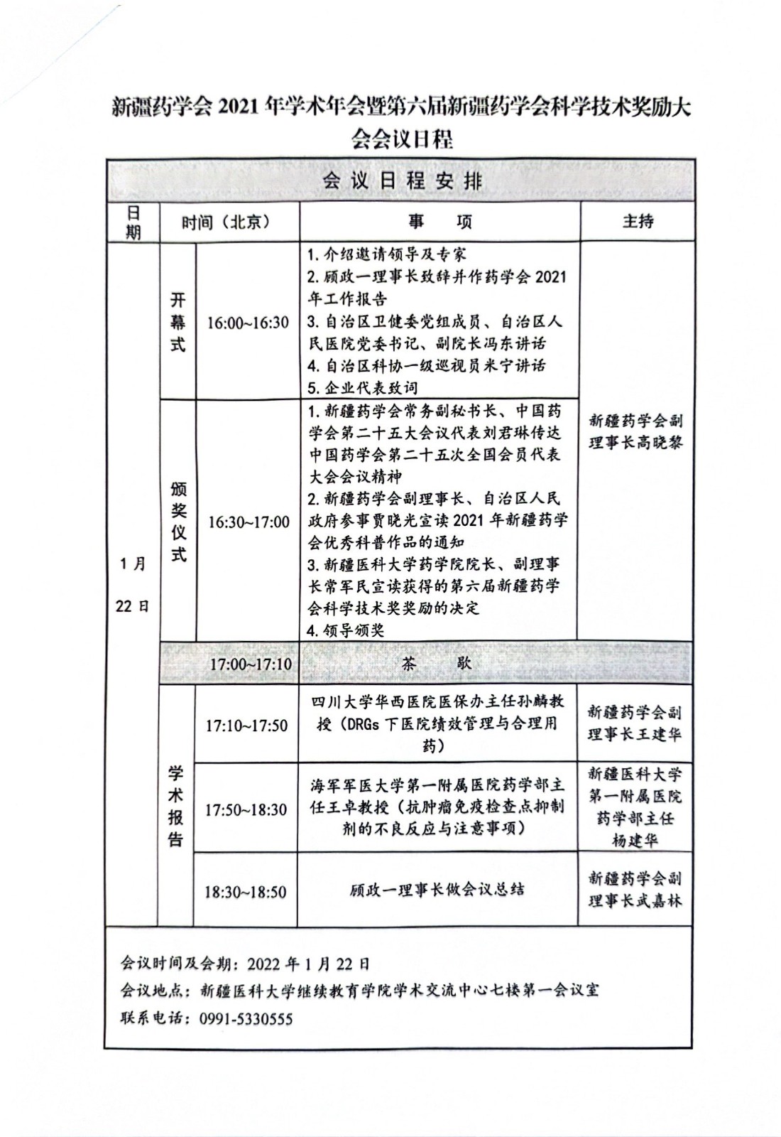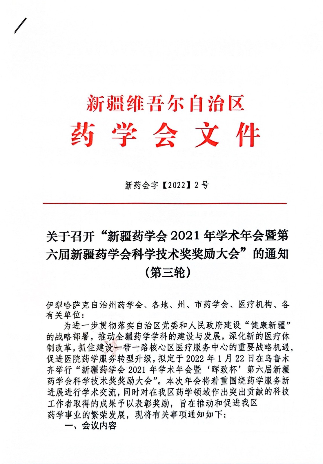 关于召开“新疆药学会2021年学术年会暨第六届新疆药学会科学技术奖奖励大会”的通知(第三轮)