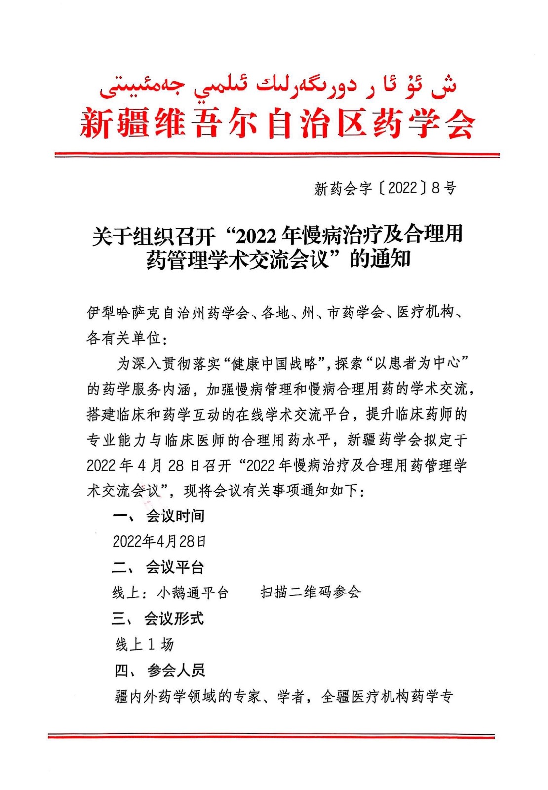 关于组织召开“2022年慢病治疗及合理用药管理学术交流会议”的通知