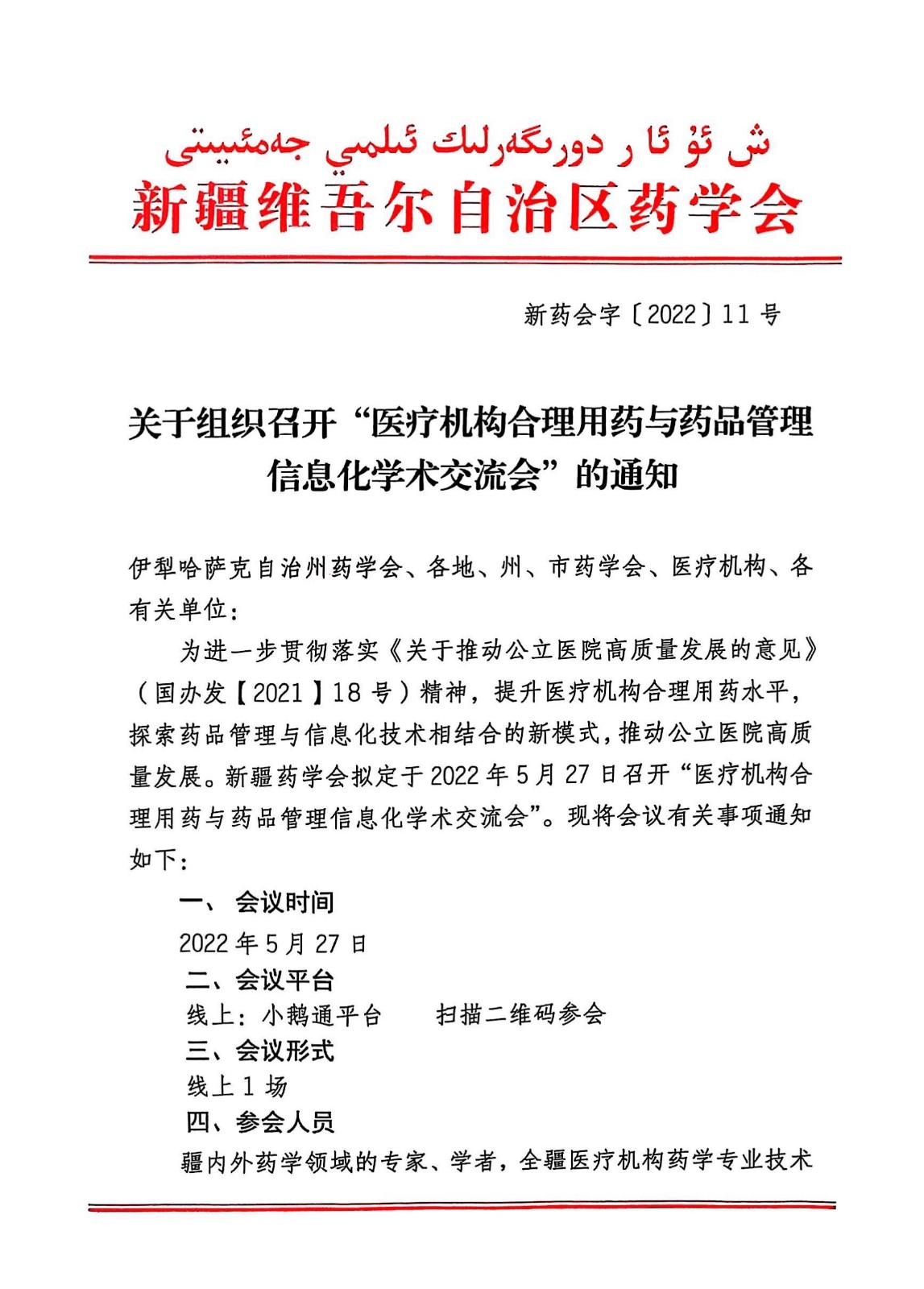 关于组织召开“医疗机构合理用药与药品管理信息化学术交流会”的通知