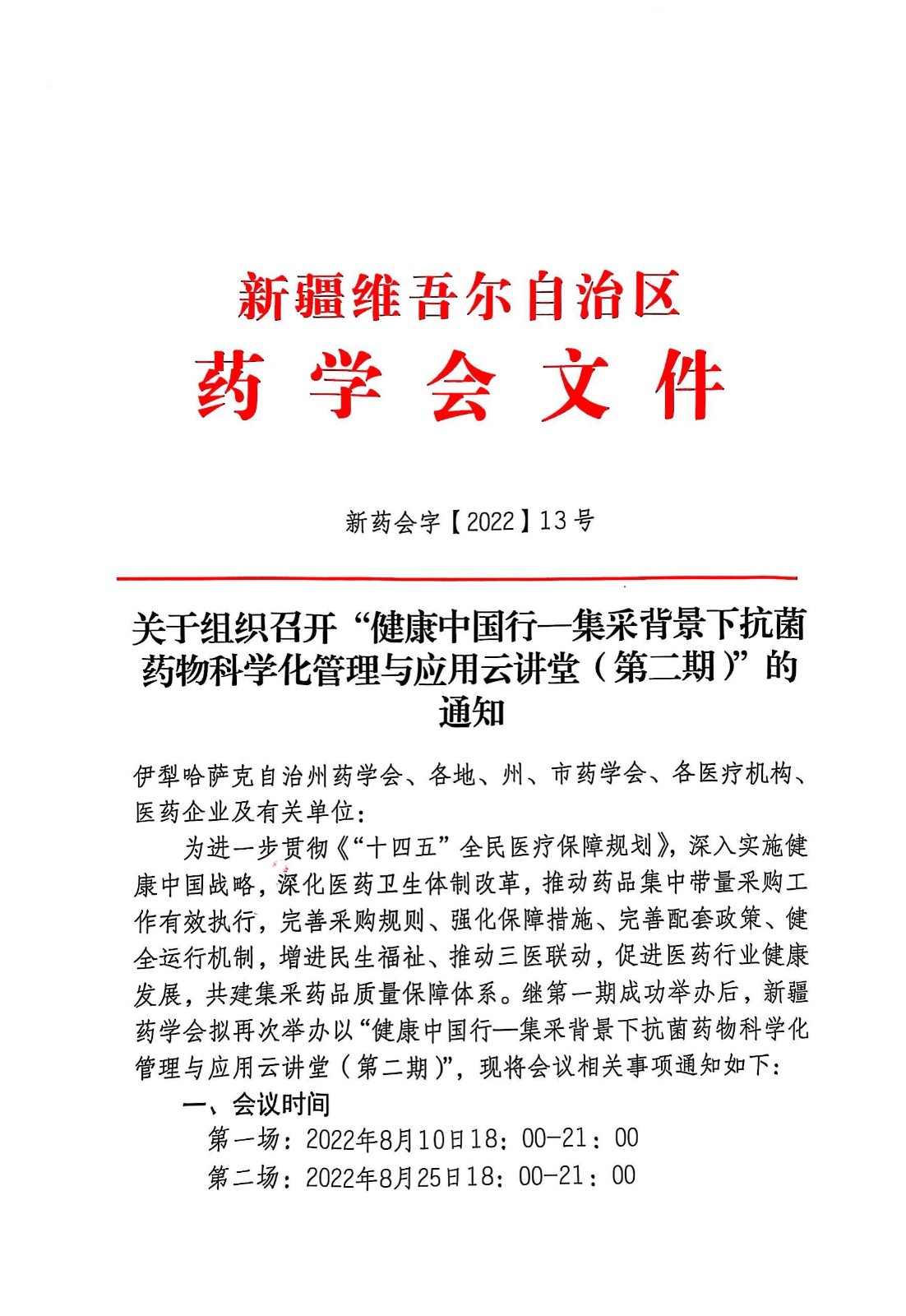 关于组织召开“健康中国行--集采背景下抗菌药物科学化管理与应用云讲堂(第二期)”的通知
