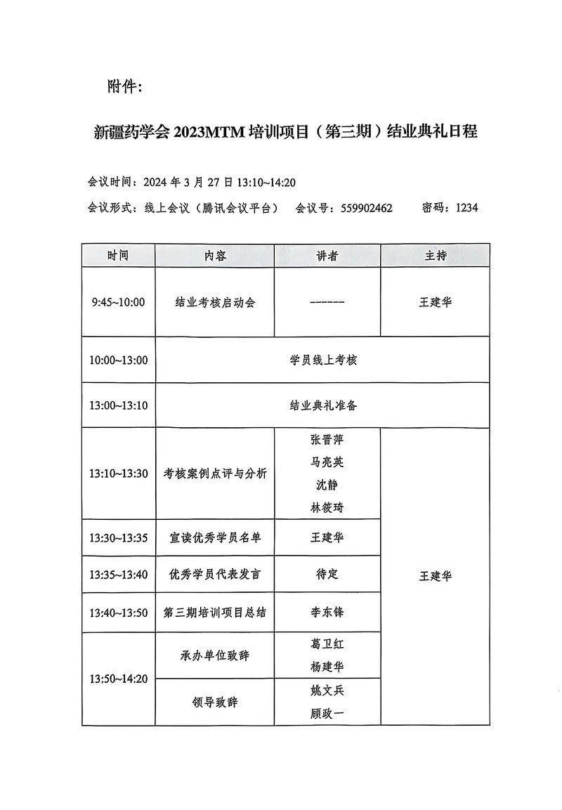 关于举办新疆药学会药物治疗管理(MTM)培训项目第三期结业考核会的通知