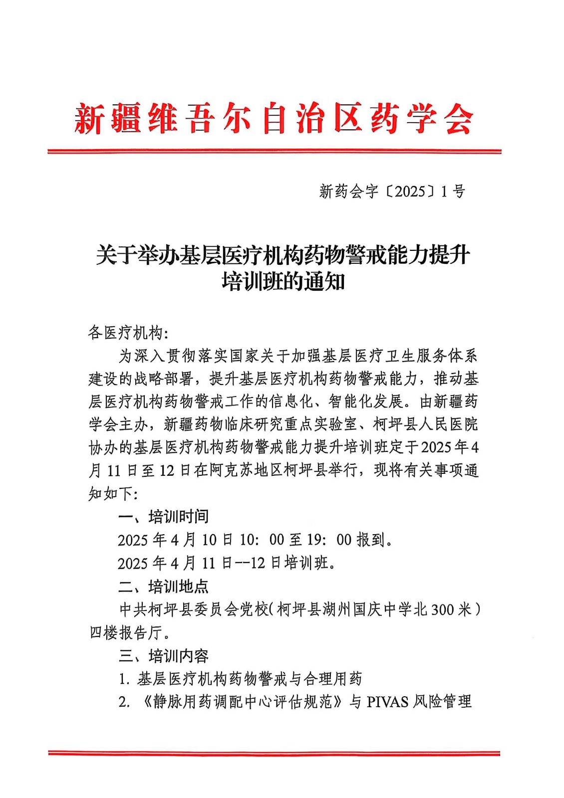 关于举办基层医疗机构药物警戒能力提升培训班的通知