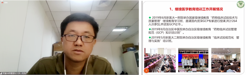 在视频工作会议上,新疆药学会药物临床试验专业委员会主任委员杨建华教授作了《专委会年度总结和下年度工作计划》;新疆药学会药物临床试验专业委员会常务委员/新疆医科大学第一附属医院药物临床试验管理办公室副主任布格拉•米吉提宣读了专委会拟增补委员名单,经在线举手表决通过了新纳入9名专委会委员。同时他还解读了“药物临床试验•新疆共识”的撰写规范,和与会人员探讨了“新冠肺炎疫情期间药物临床试验管理—新疆共识”编写计划等。