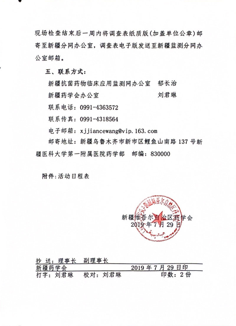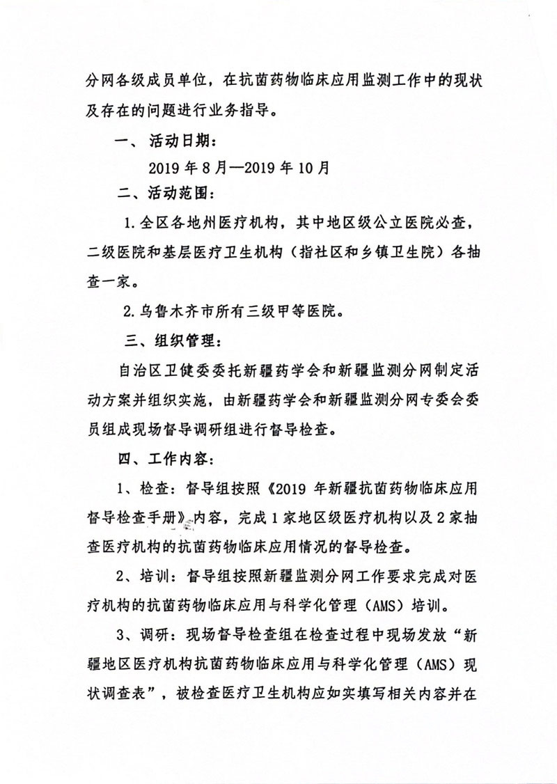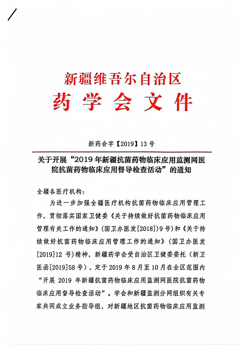 关于开展“2019年新疆抗菌药物临床应用监测网医院抗菌药物临床应用督导检查活动”的通知
