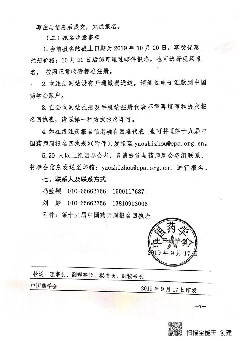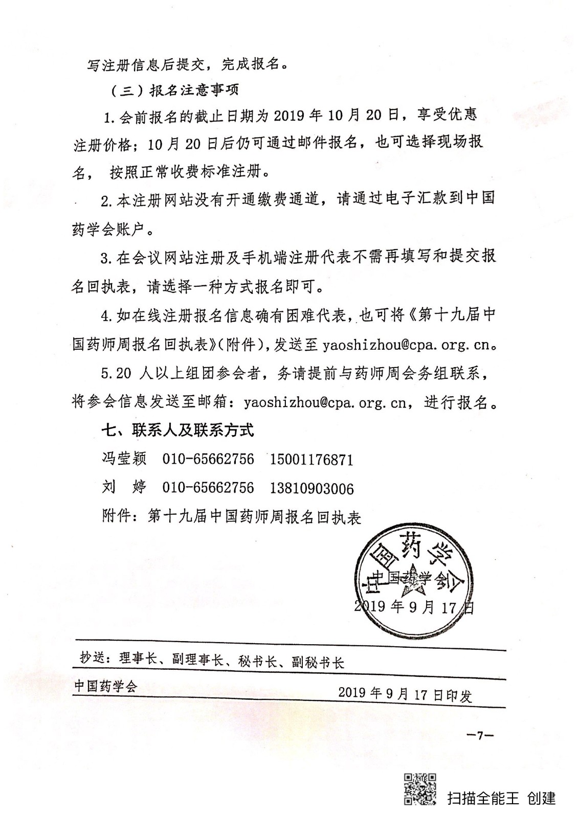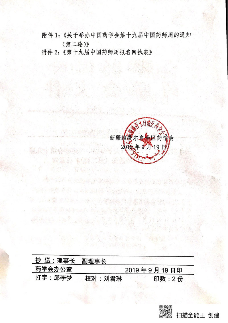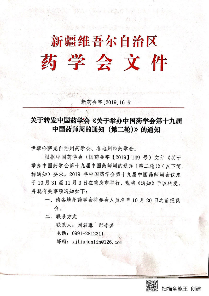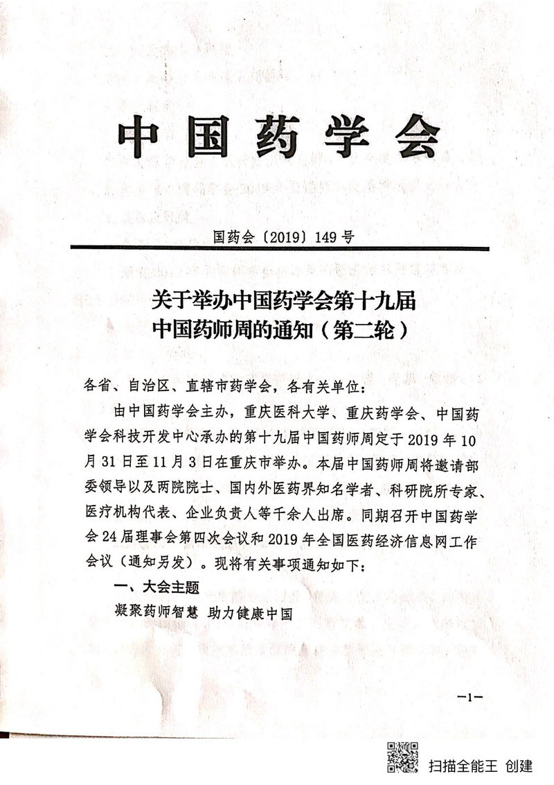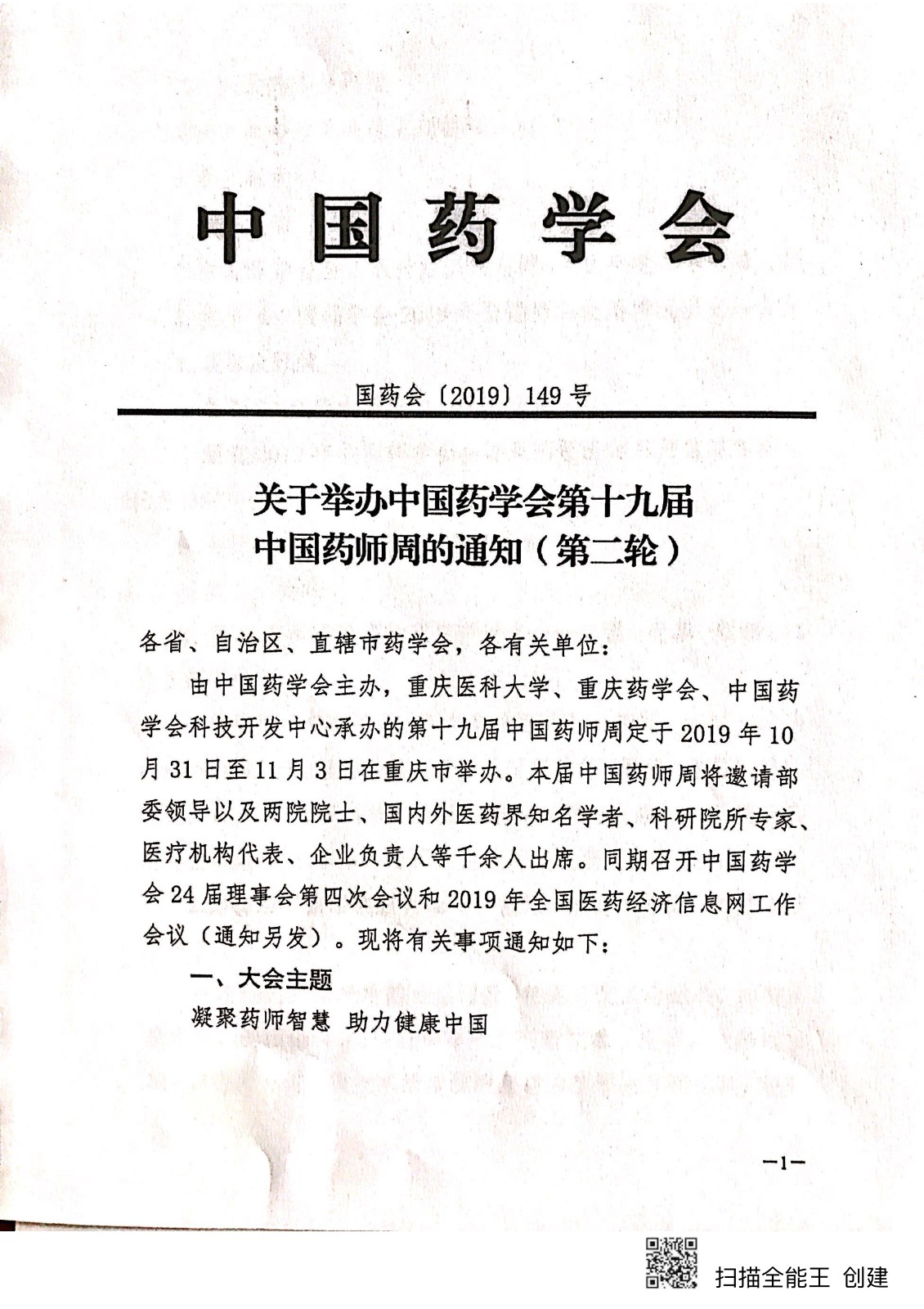 关于转发中国药学会《关于举办中国药学会第十九届中国药师周的通知(第二轮)》的通知