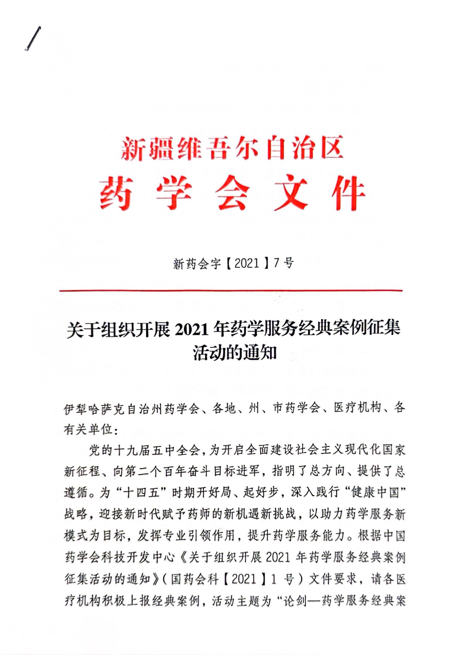 关于组织开展2021年药学服务经典案例征集活动的通知
