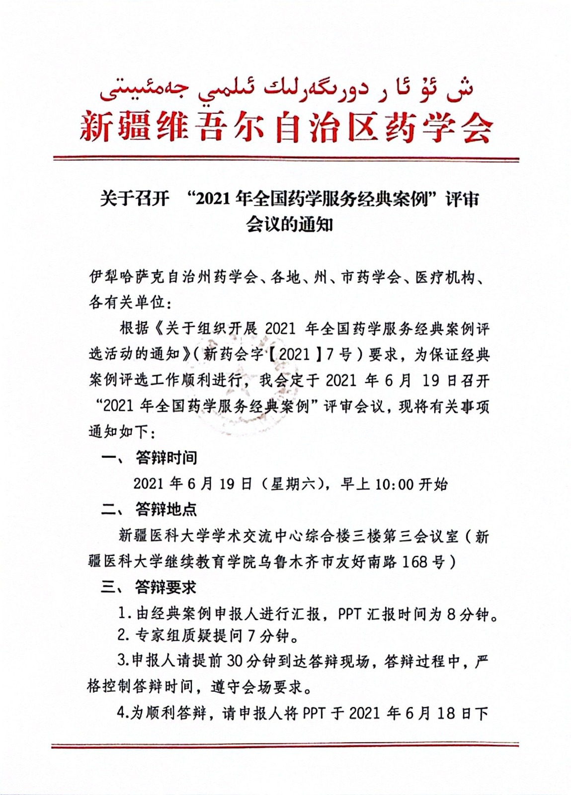 关于召开“2021年全国药学服务经典案例”评审会议的通知