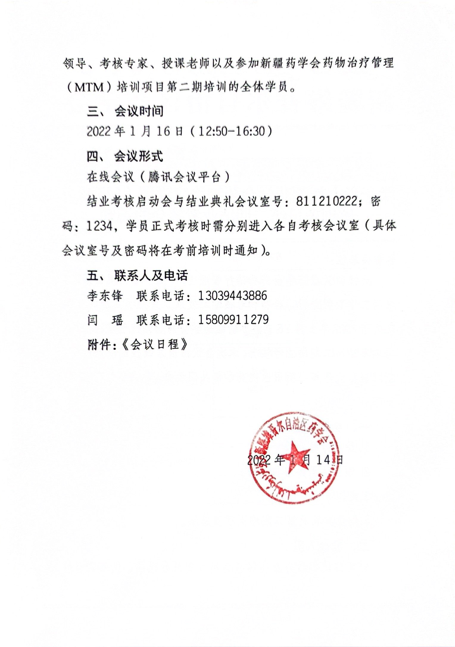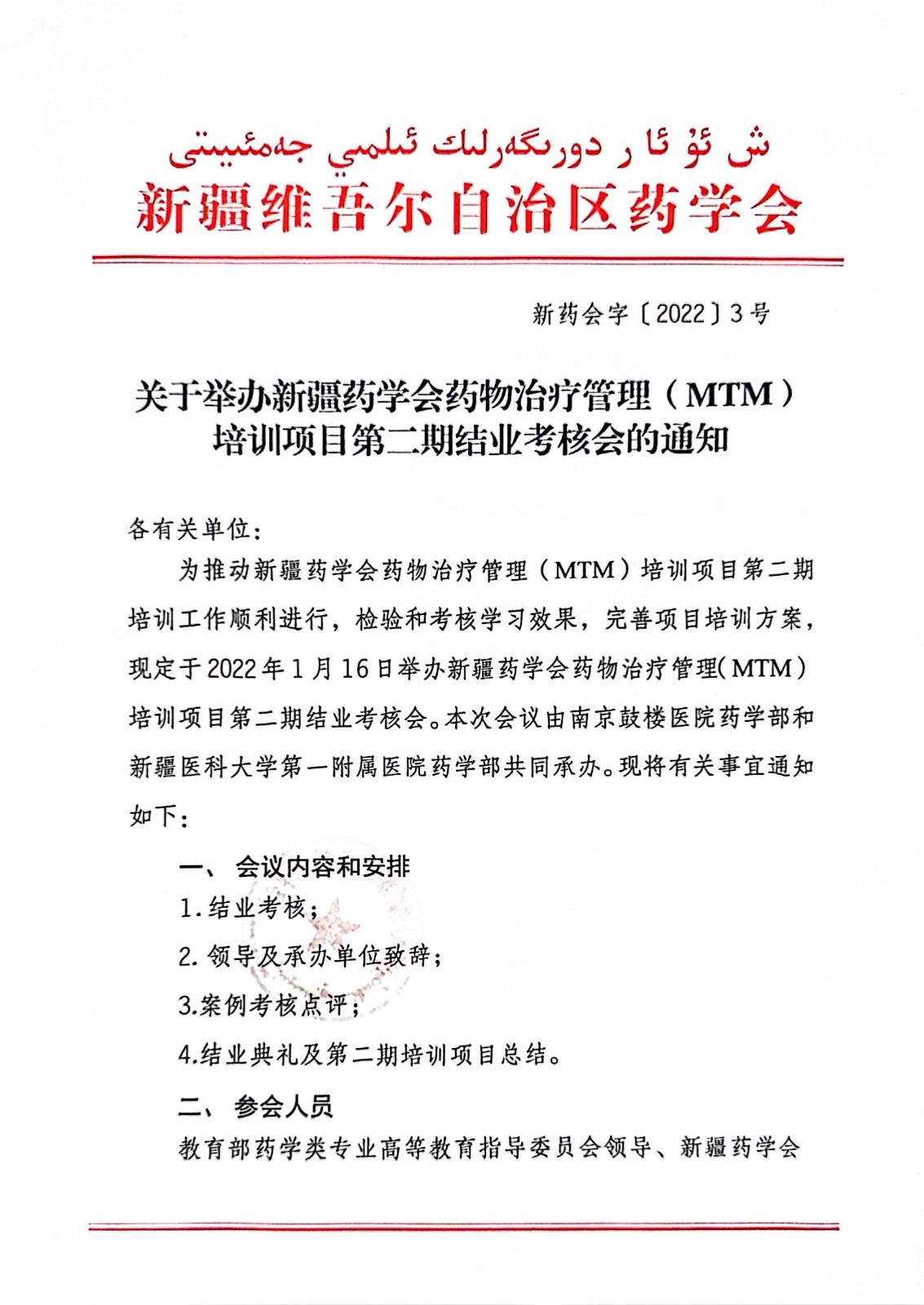 关于举办新疆药学会药物治疗管理(MTM)培训项目第二期结业考核会的通知