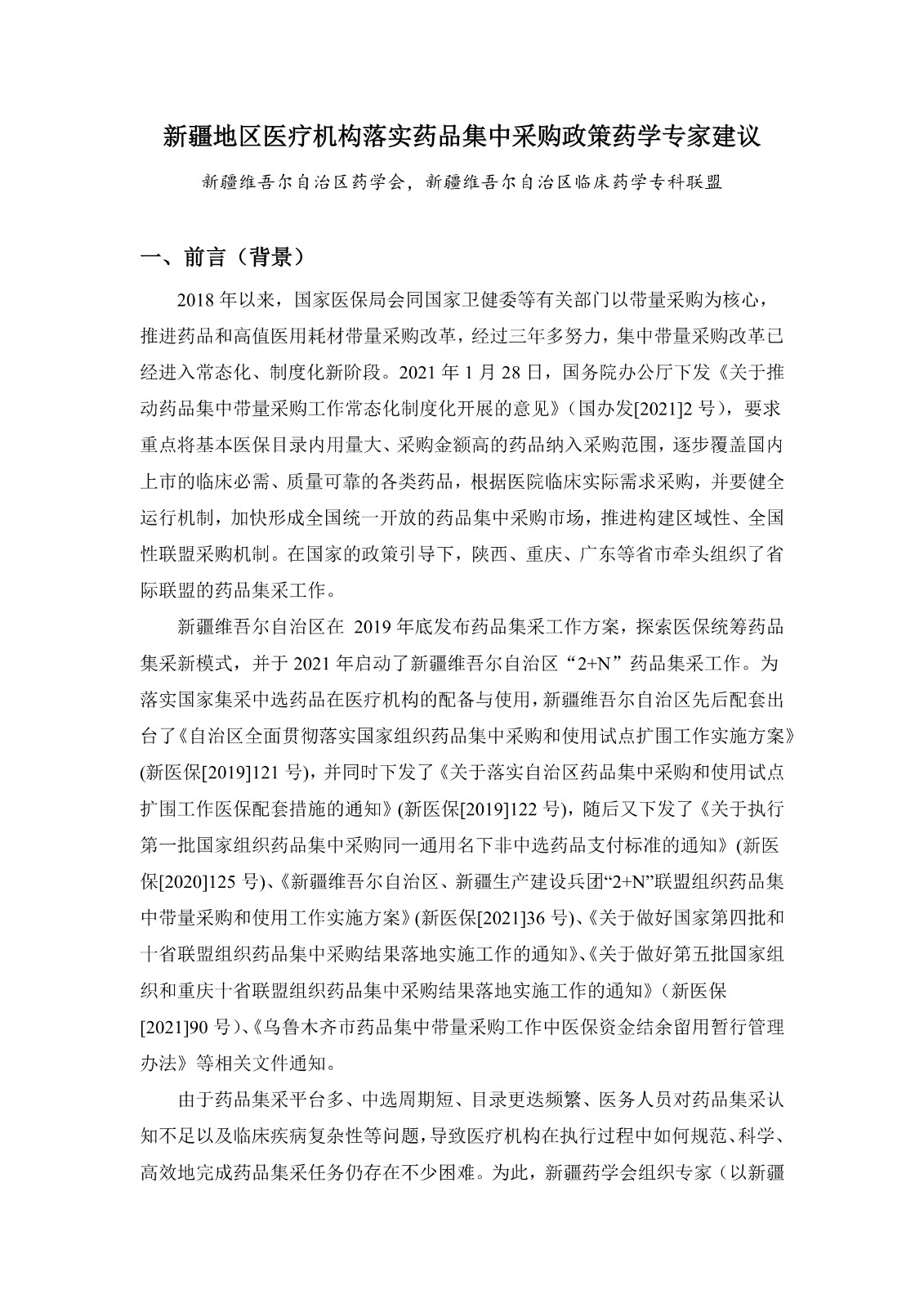 附件:《新疆地区医疗机构落实药品集中采购政策药学专家建议》.pdf