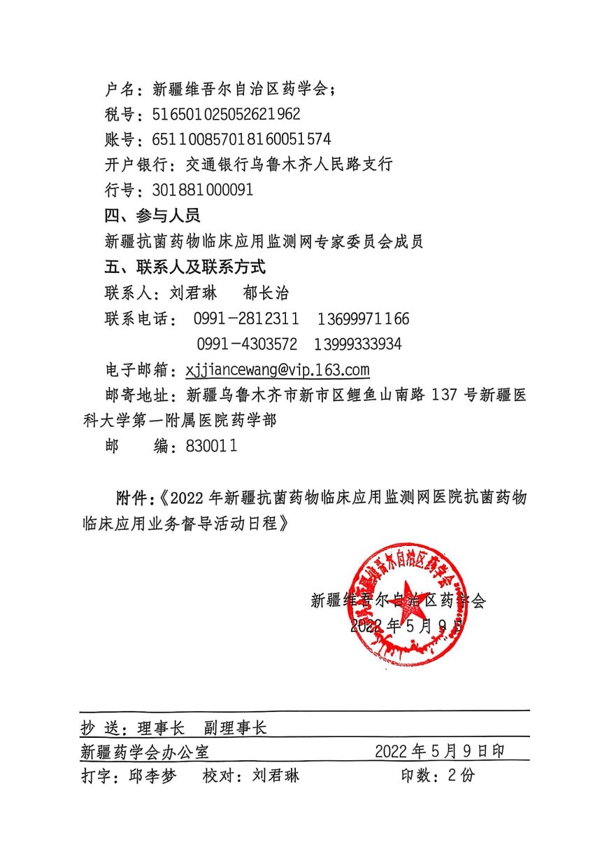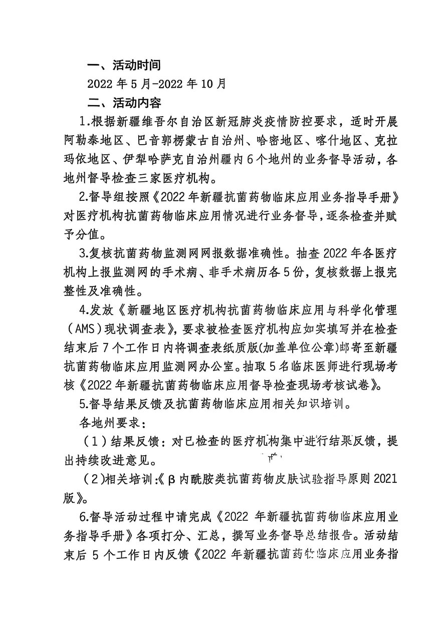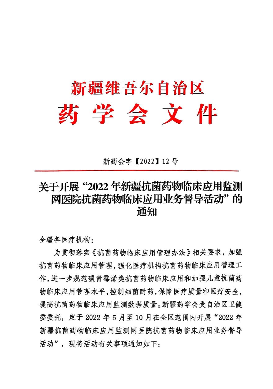 关于开展“2022年新疆抗菌药物临床应用监测网医院抗菌药物临床应用业务督导活动”的通知
