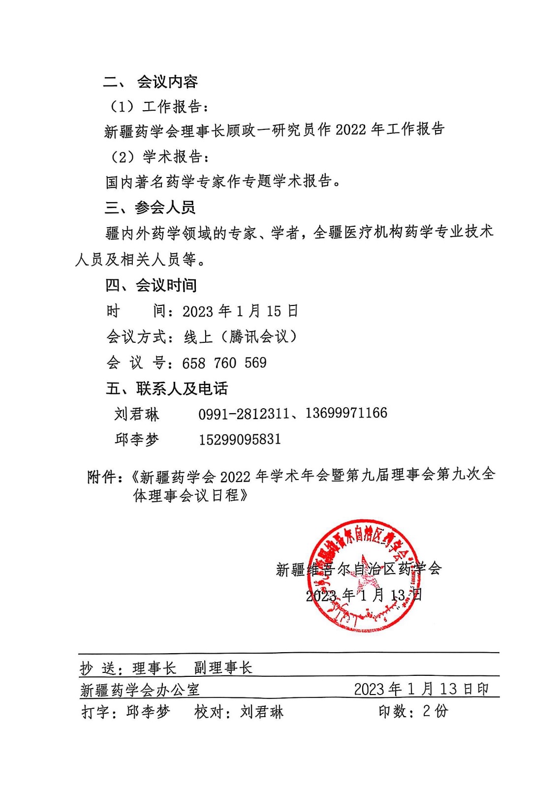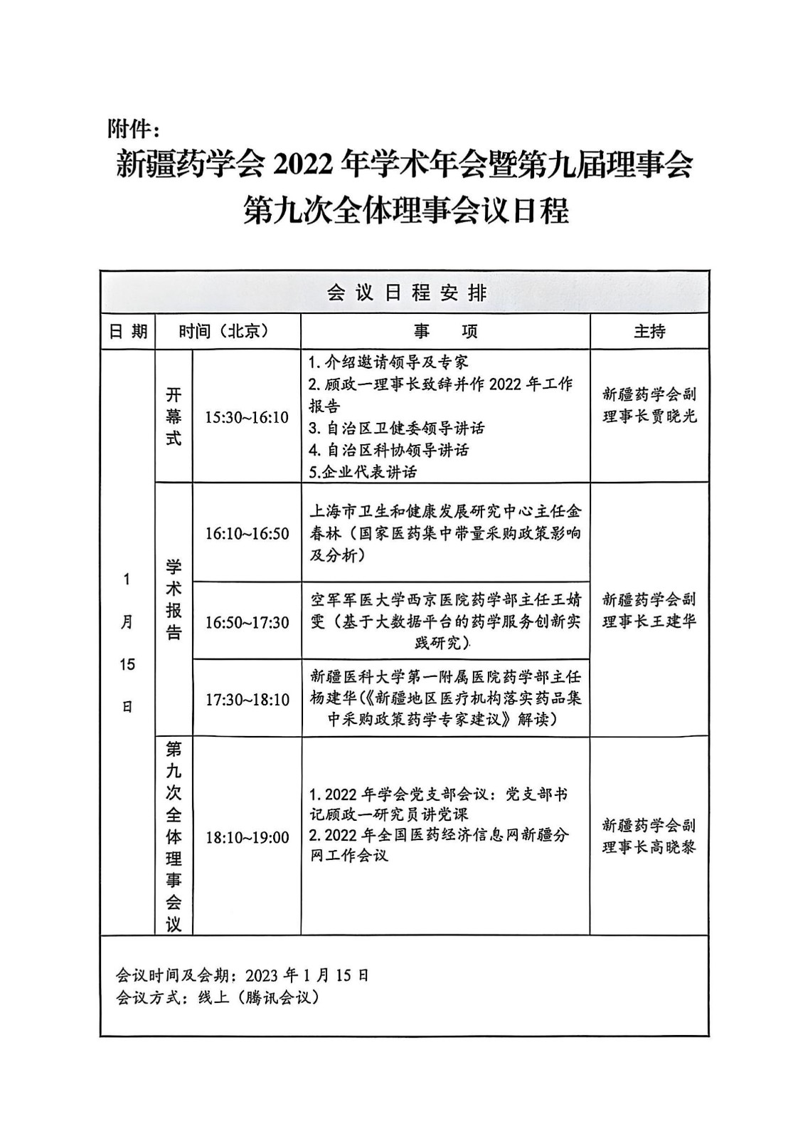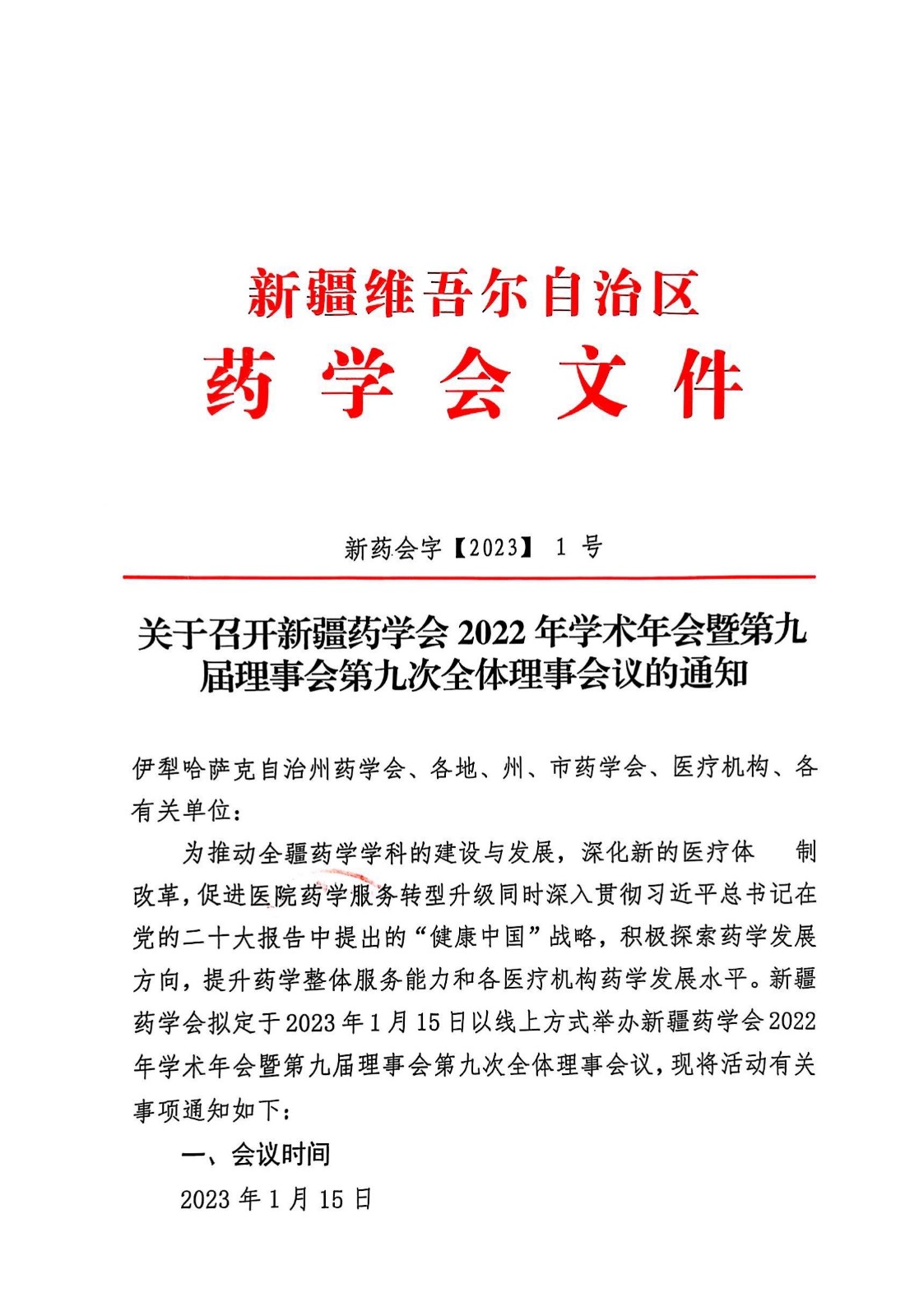 关于召开新疆药学会2022年学术年会暨第九届理事会第九次全体理事会议的通知