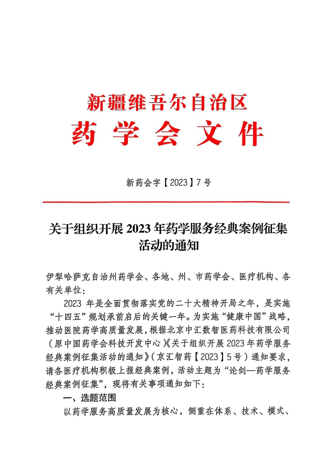 关于组织开展2023年药学服务经典案例征集活动的通知