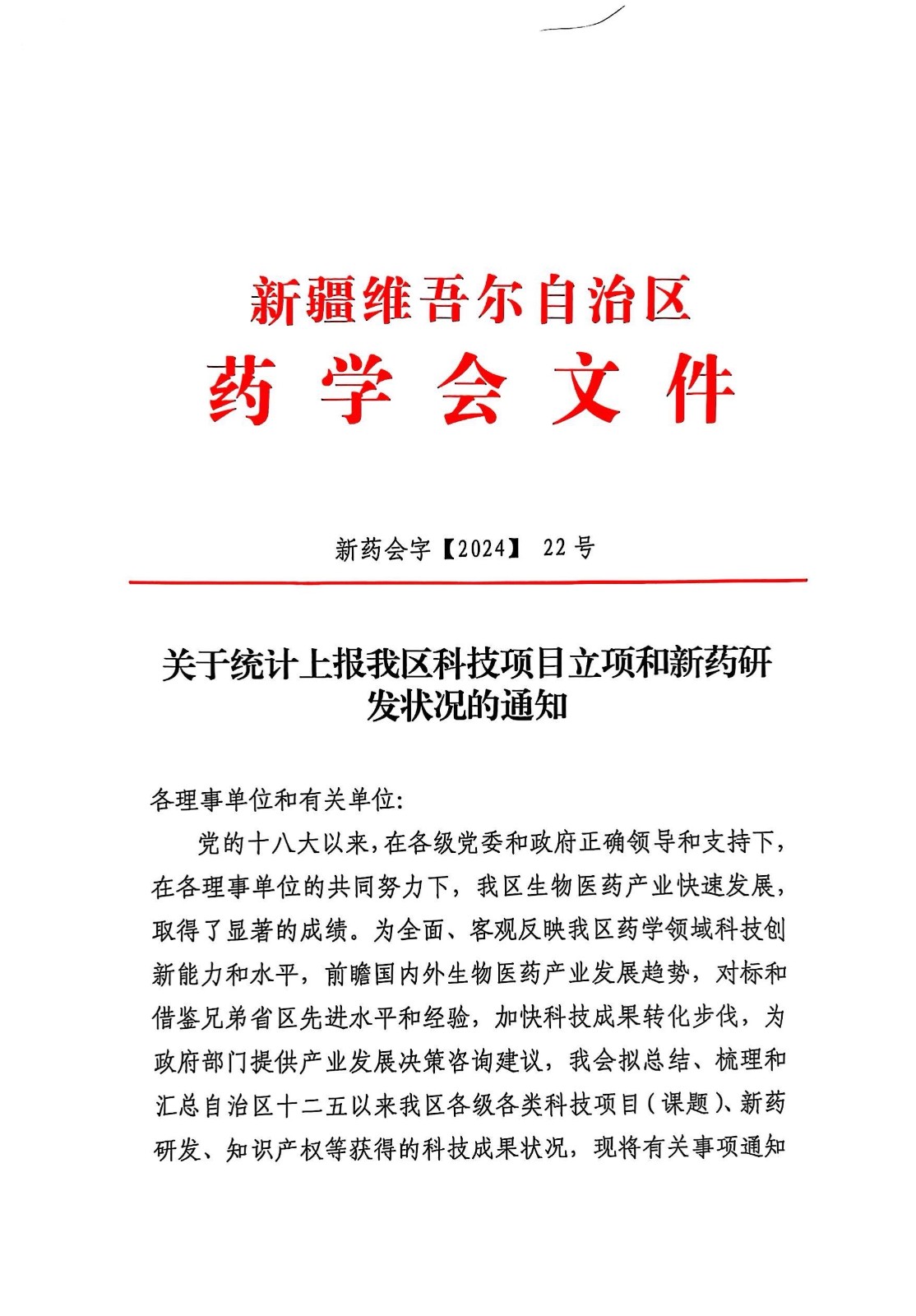 关于统计上报我区科技项目立项和新药研发状况的通知