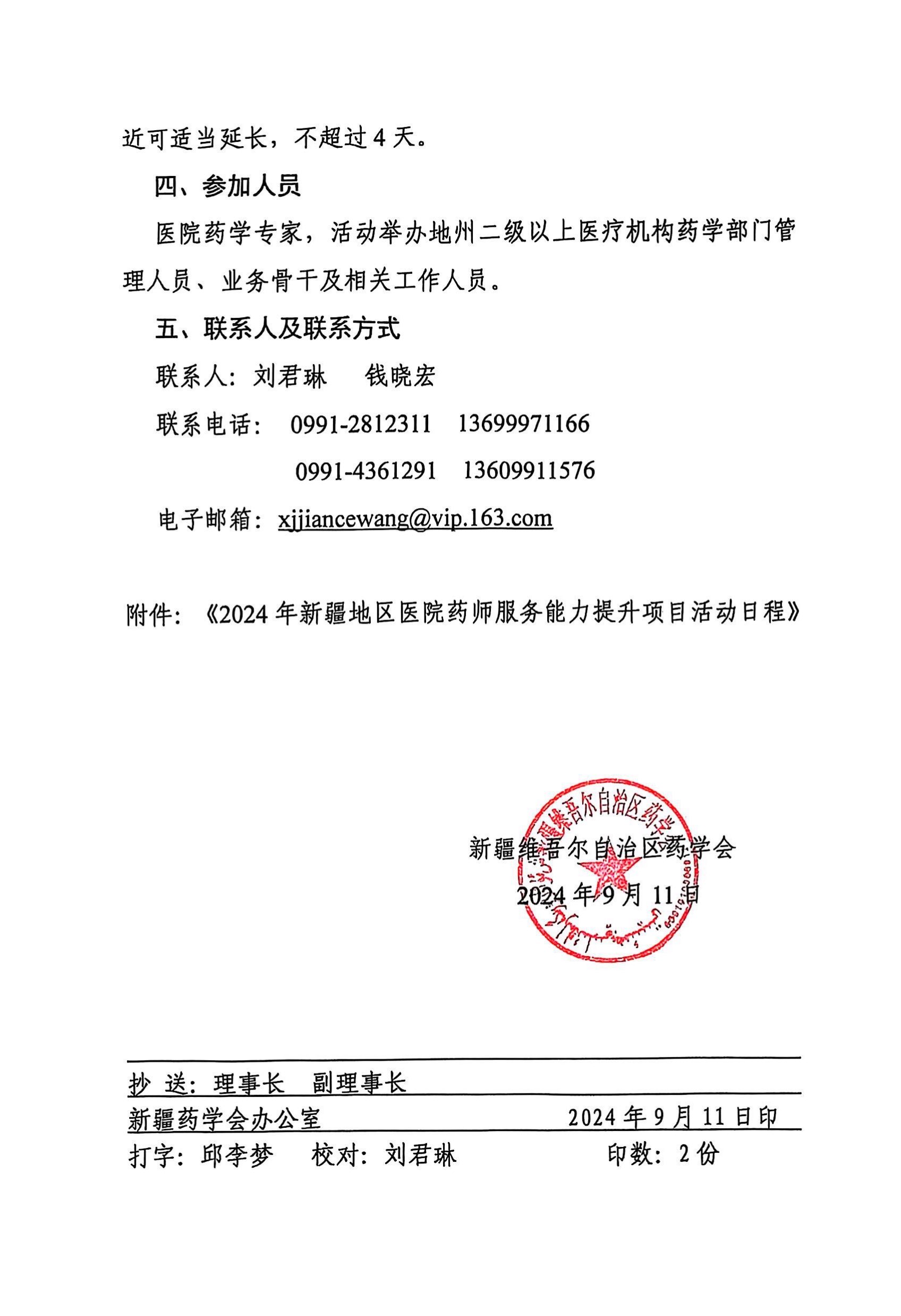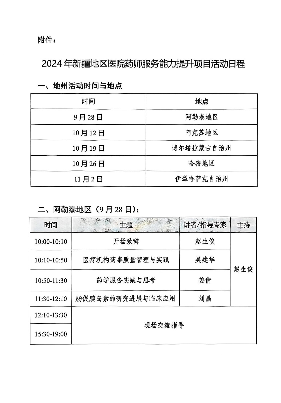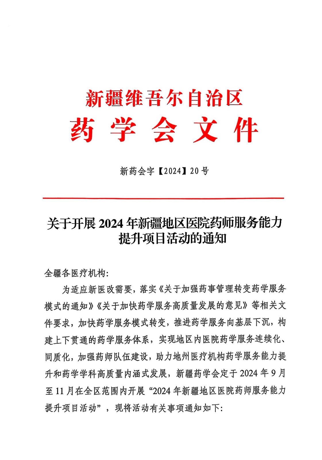 关于开展2024年新疆地区医院药师服务能力提升项目活动的通知