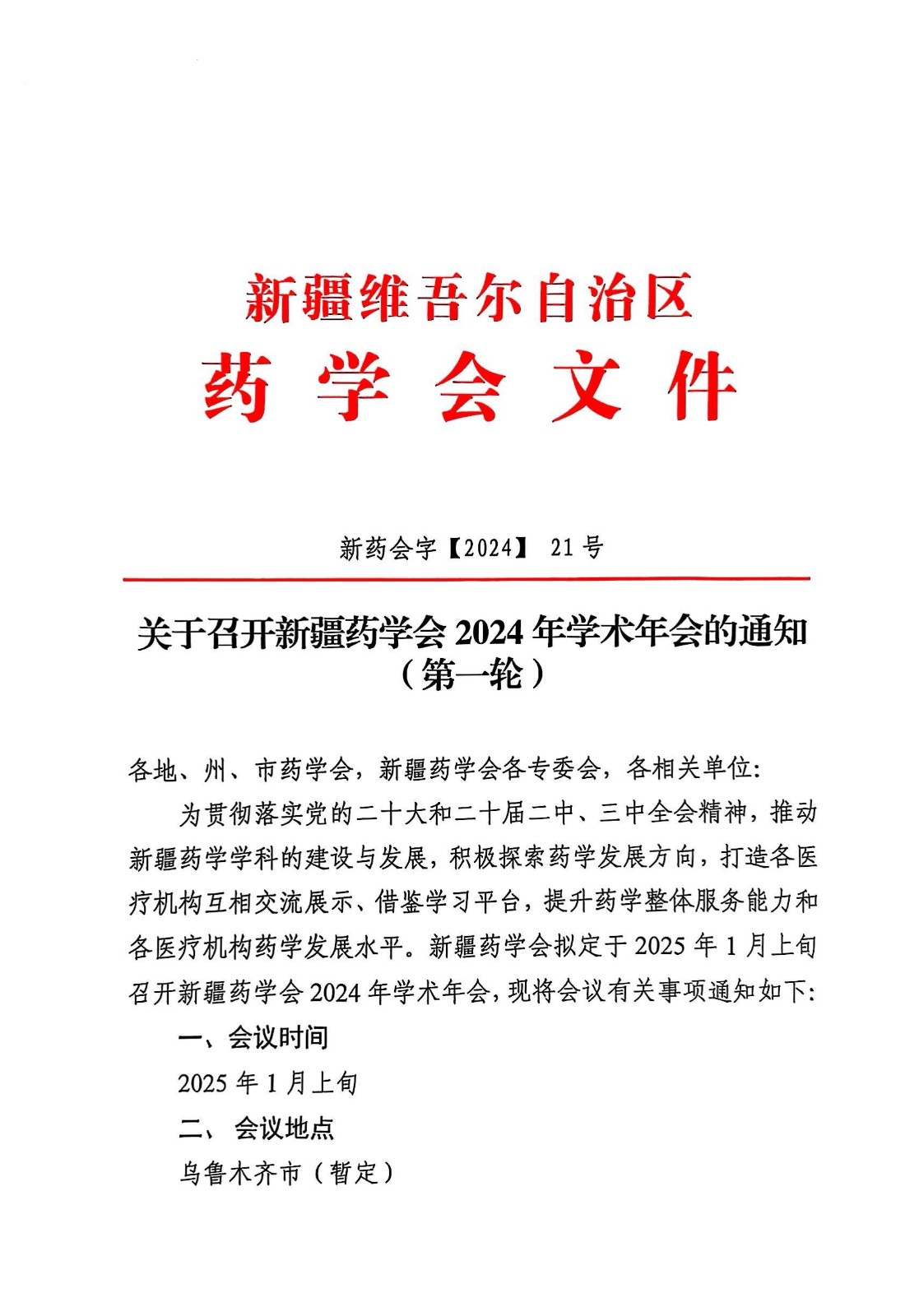 关于召开新疆药学会2024年学术年会的通知(第一轮)