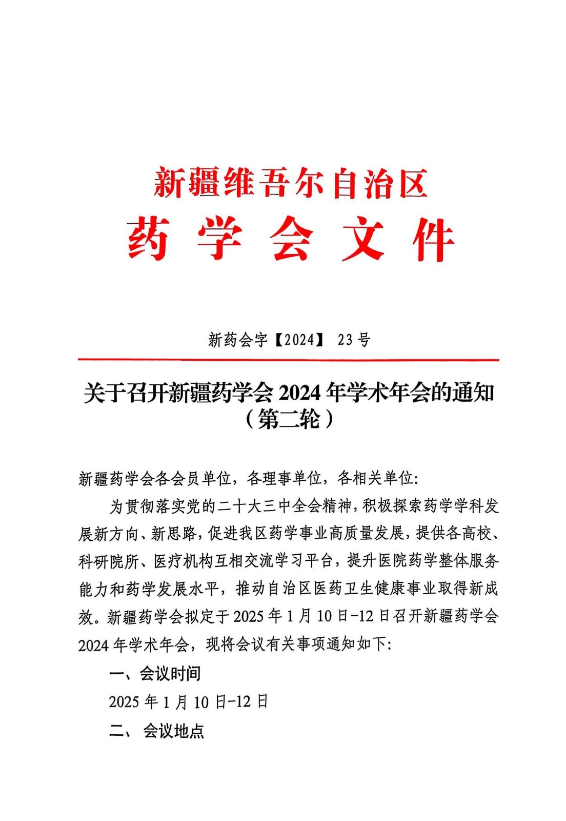关于召开新疆药学会2024学术年会的通知(第二轮)