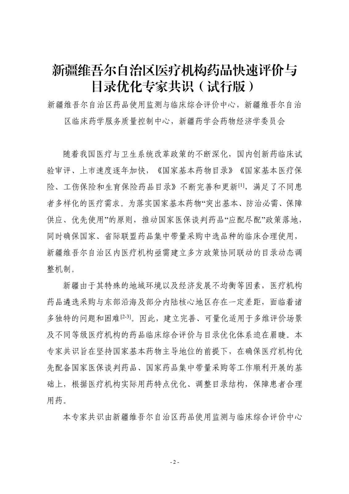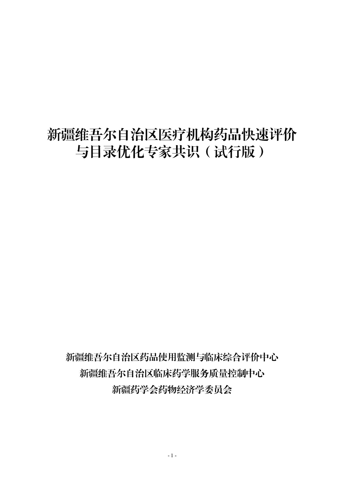 新疆维吾尔自治区医疗机构药品快速评价与目录优化专家共识(试行版)